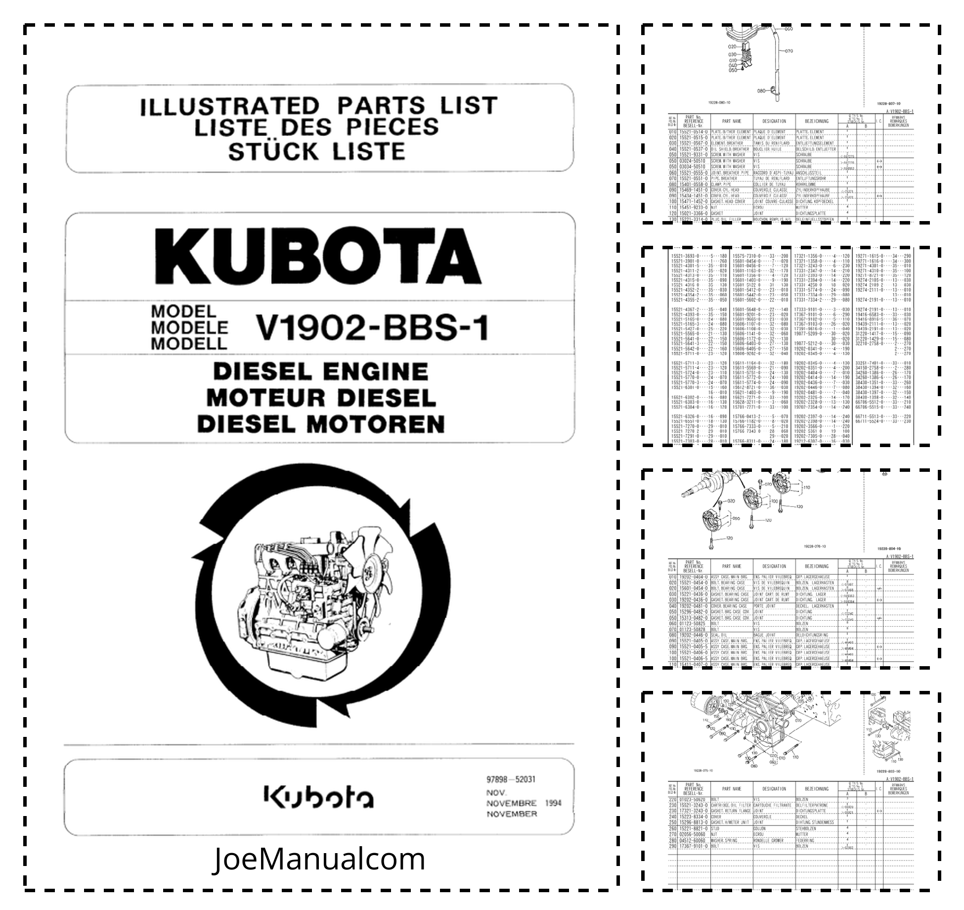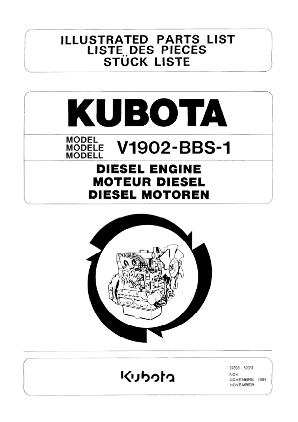 Kubota V1902-BBS-1 Diesel Engine Parts Manual. This comprehensive manual is designed to provide detailed information on the parts and components of the Kubota V1902-BBS-1 diesel engine. It serves as an essential resource for maintenance, repairs, and replacements, offering clear diagrams, part numbers, and specifications to ensure accurate and efficient servicing. Whether you are a professional mechanic or a DIY enthusiast, this manual is a valuable guide for keeping your engine in optimal condition. It covers all major parts, including the engine block, cylinder head, fuel system, cooling system, and more, making it an indispensable tool for anyone working with this engine model.