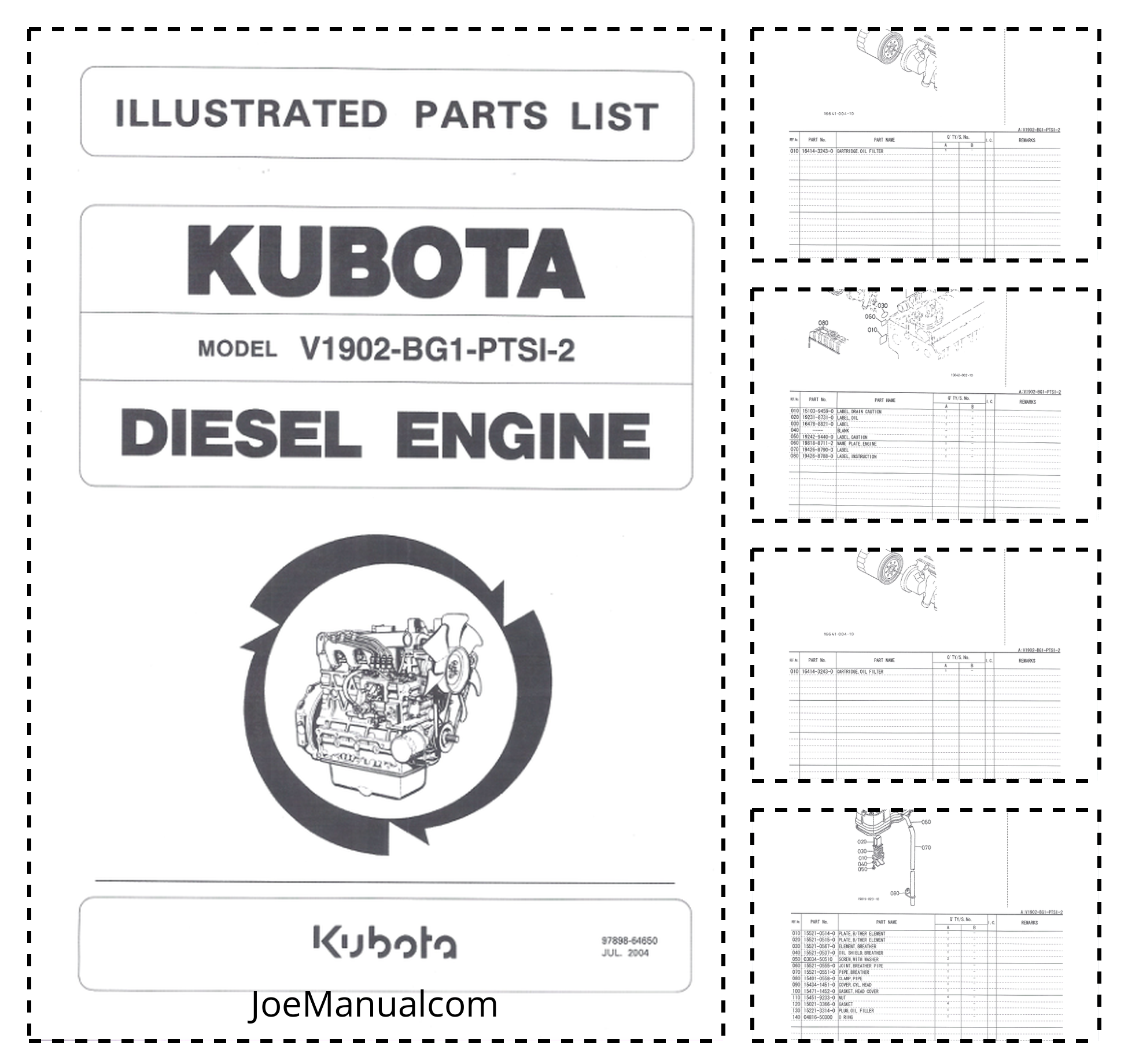 The Kubota V1902 B Diesel Engine Parts Manual is a comprehensive guide specifically designed for the Kubota V1902 B diesel engine. This manual provides detailed information on engine components, parts identification, and specifications, making it an essential resource for maintenance, repairs, and part replacements. It includes diagrams, part numbers, and exploded views to ensure accurate identification and installation of parts. Ideal for mechanics, technicians, and DIY enthusiasts, this manual helps streamline the repair process with precise and clear instructions. Whether for routine maintenance or complex repairs, the Kubota V1902 B Diesel Engine Parts Manual is a valuable tool for anyone working with this reliable engine.