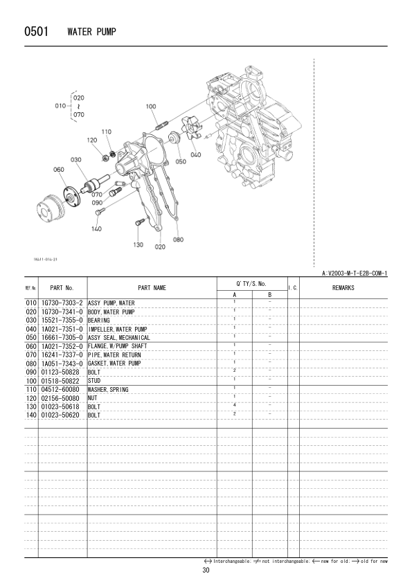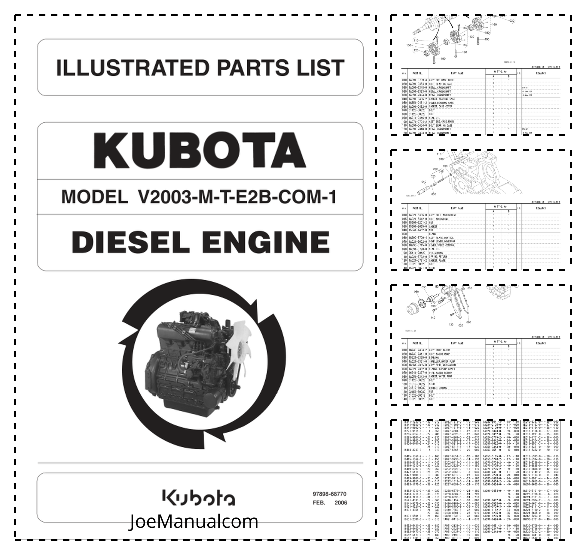 Kubota V2003M Diesel Engine Parts Catalog