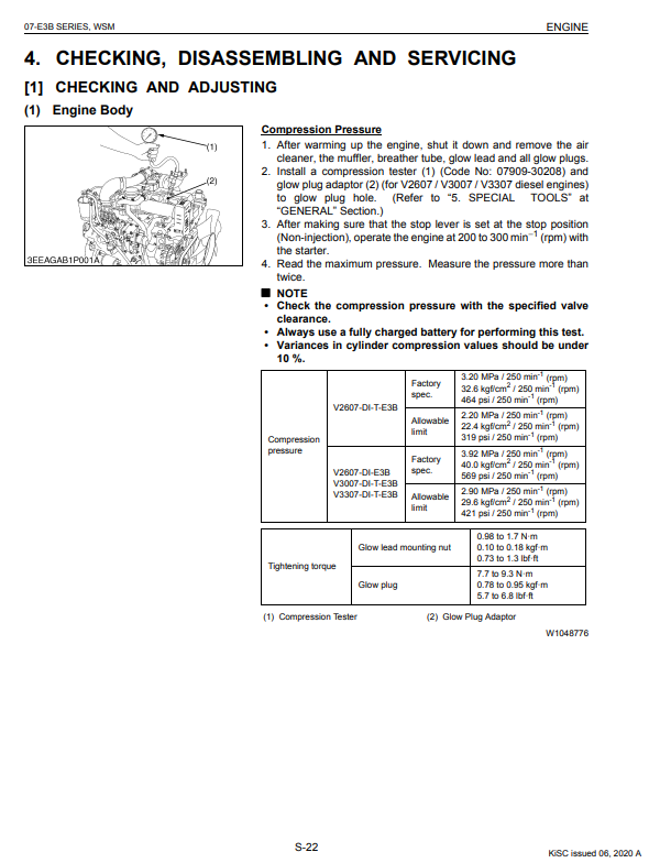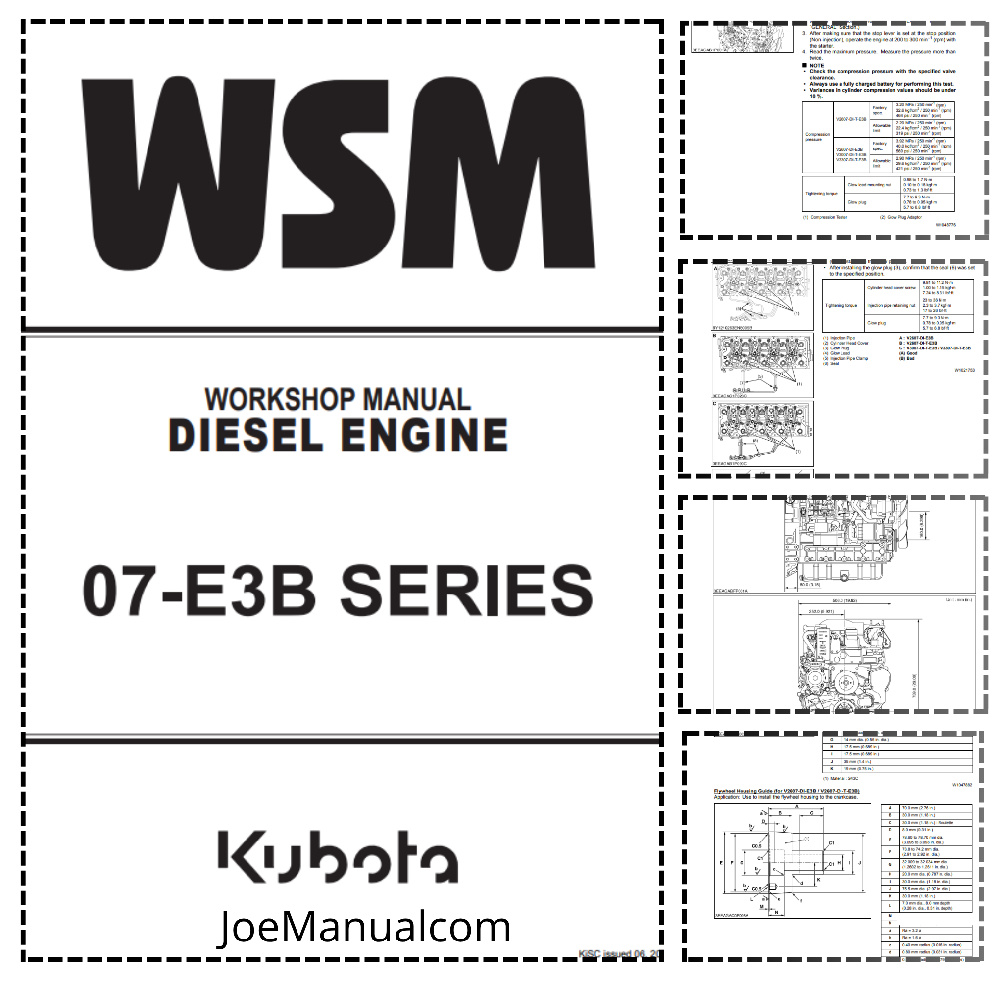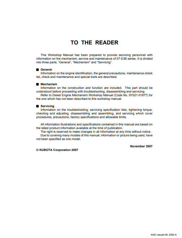 Kubota V2607 V3007 B3307 DI Diesel Engines Workshop Manual