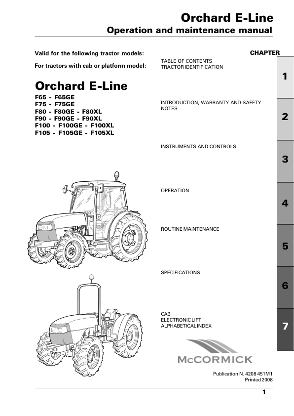 Landini Serie F F65 F75 F80 F90 F100 F105 Orchard Tractor Operator Manual
