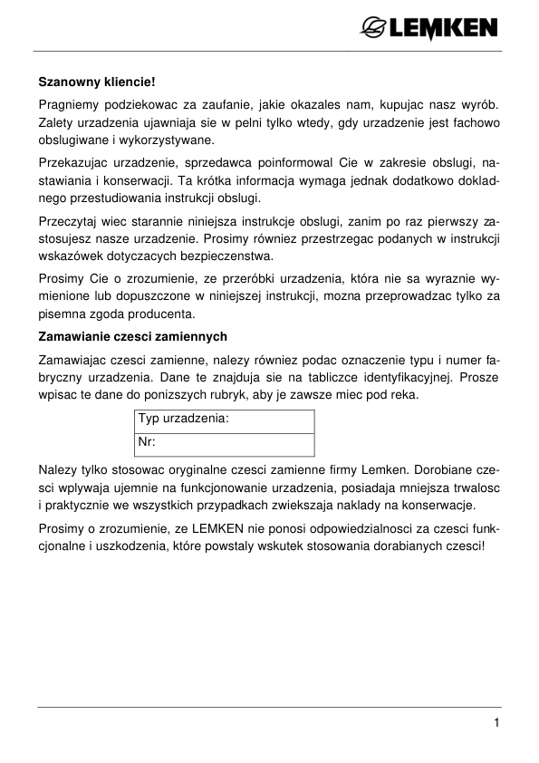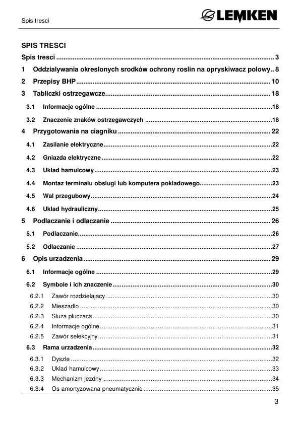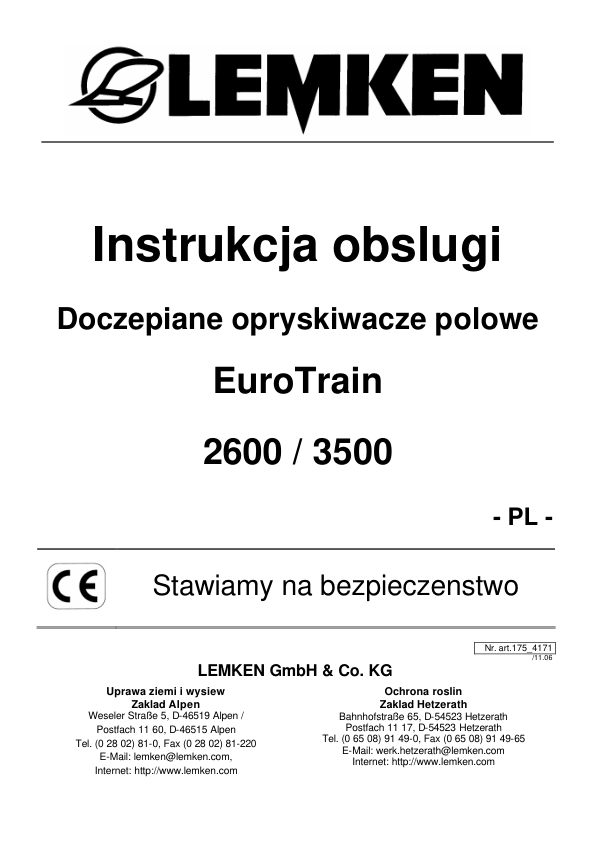 Lemken EuroTrain 2600 3500 Trailed Field Sprayer Operators Manual PL
