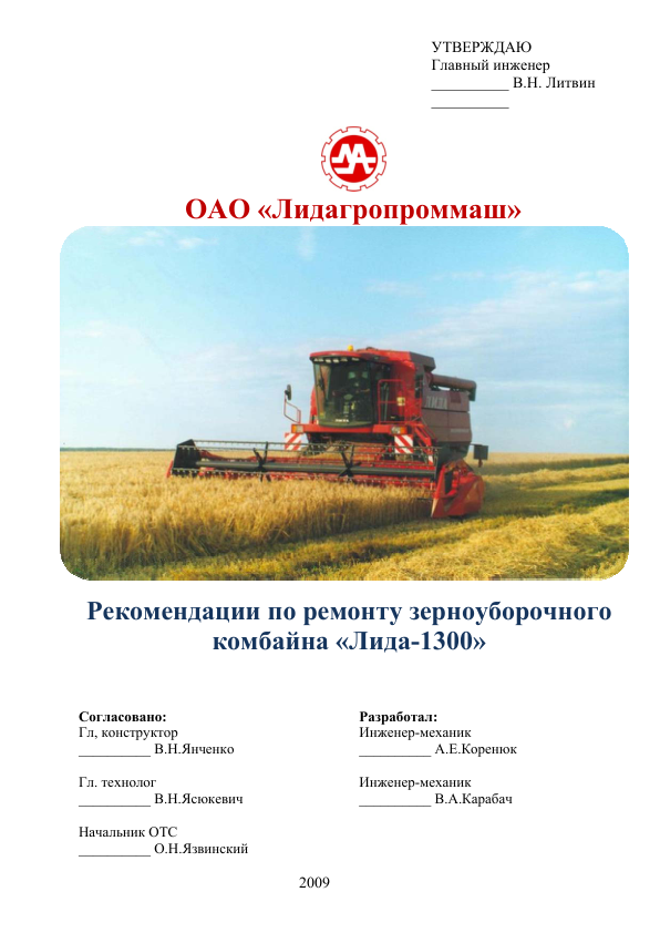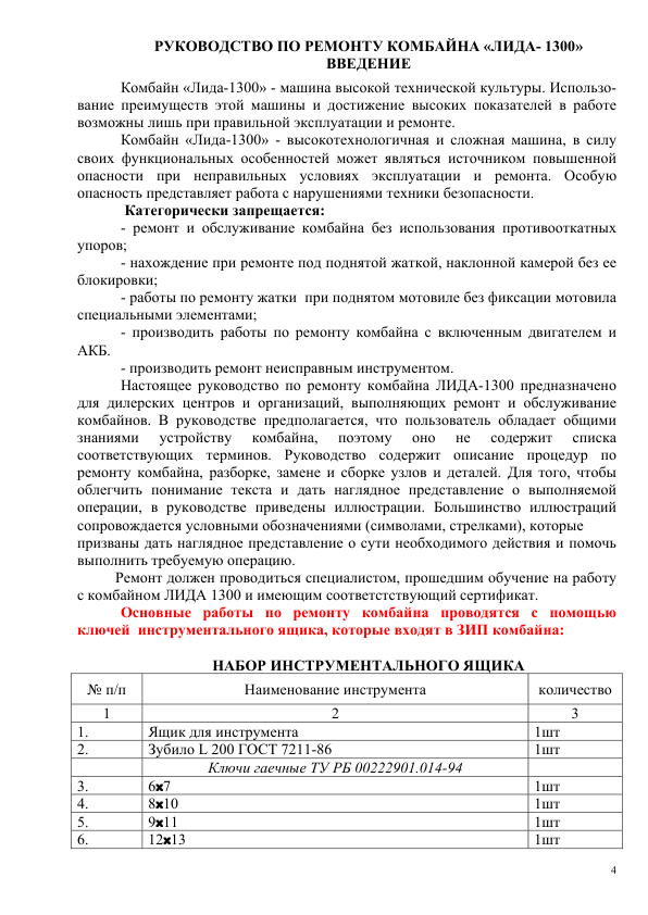 Lida 1300 Combine Harvesters Workshop Manual RU