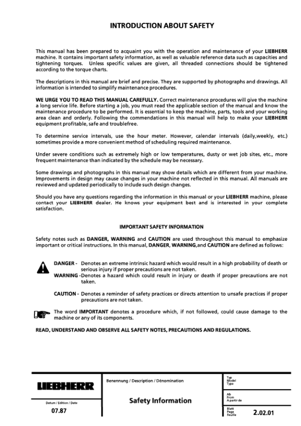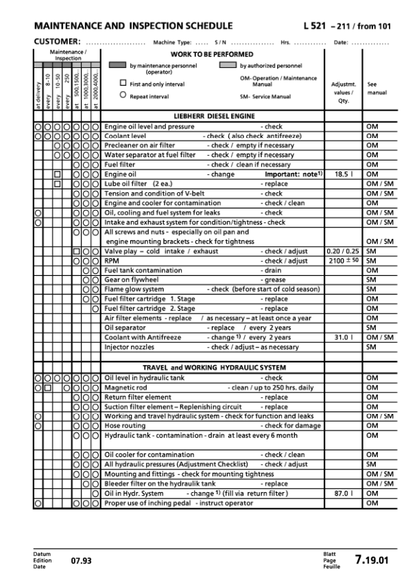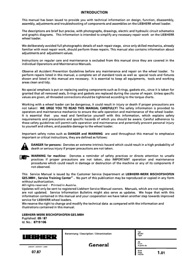 Liebherr L511 L521 L531 L541 Wheel Loader Service Manual