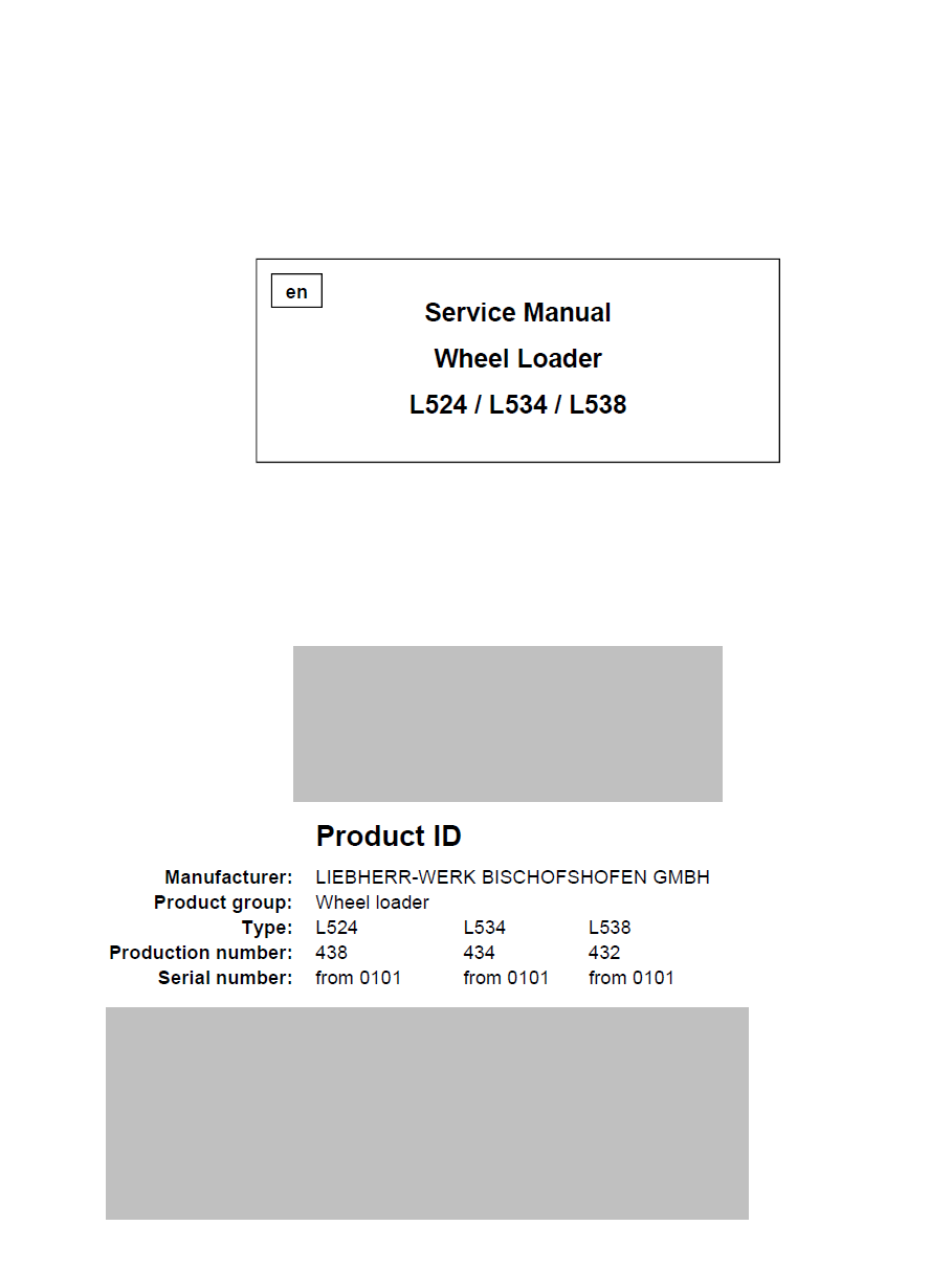 Liebherr L524-438 L534-434 L538-432 Wheel Loader Service Manual from SN 0101