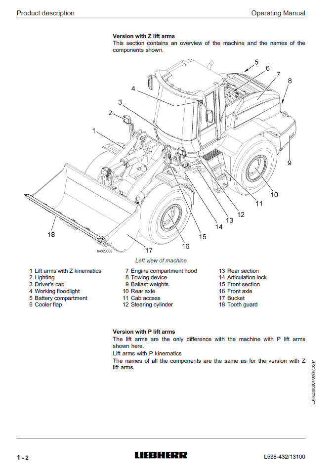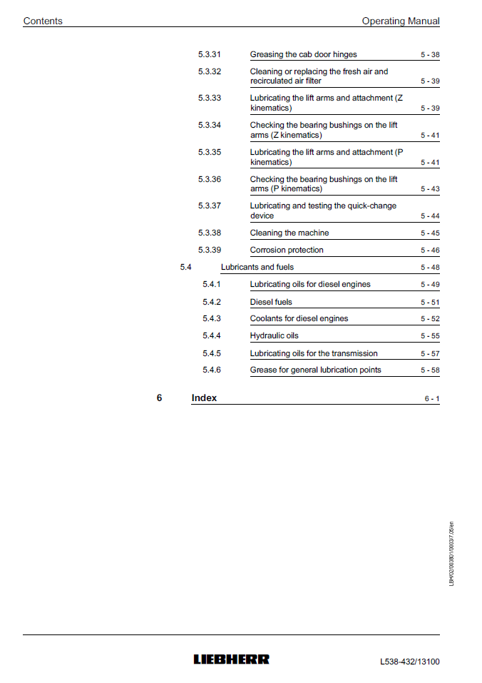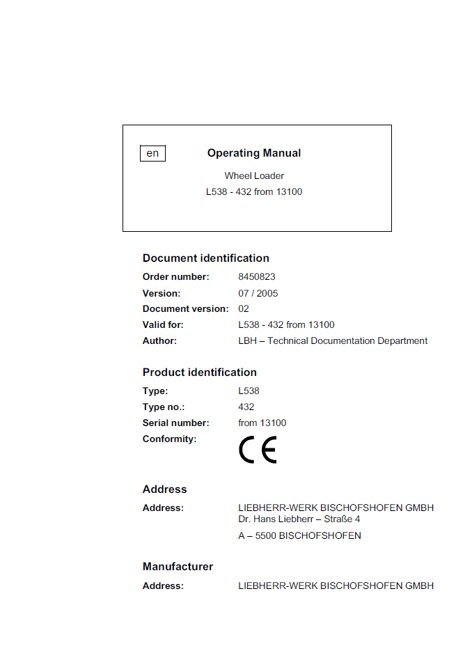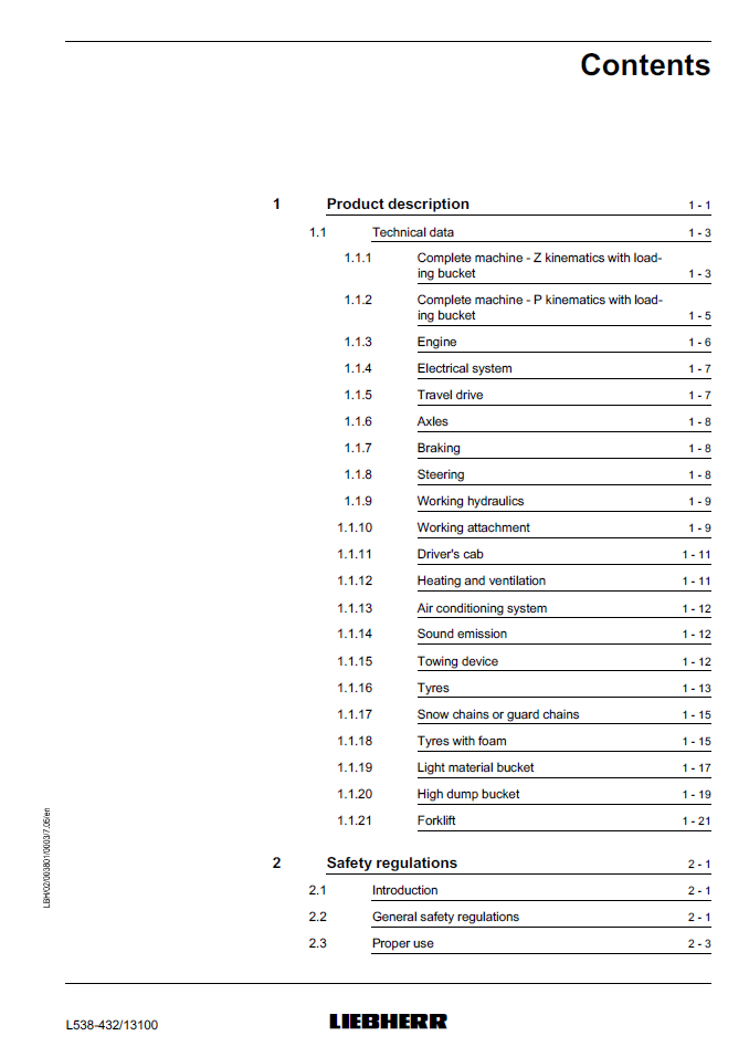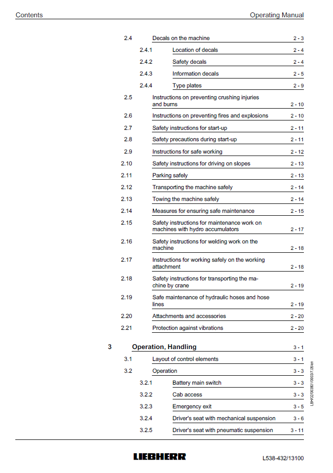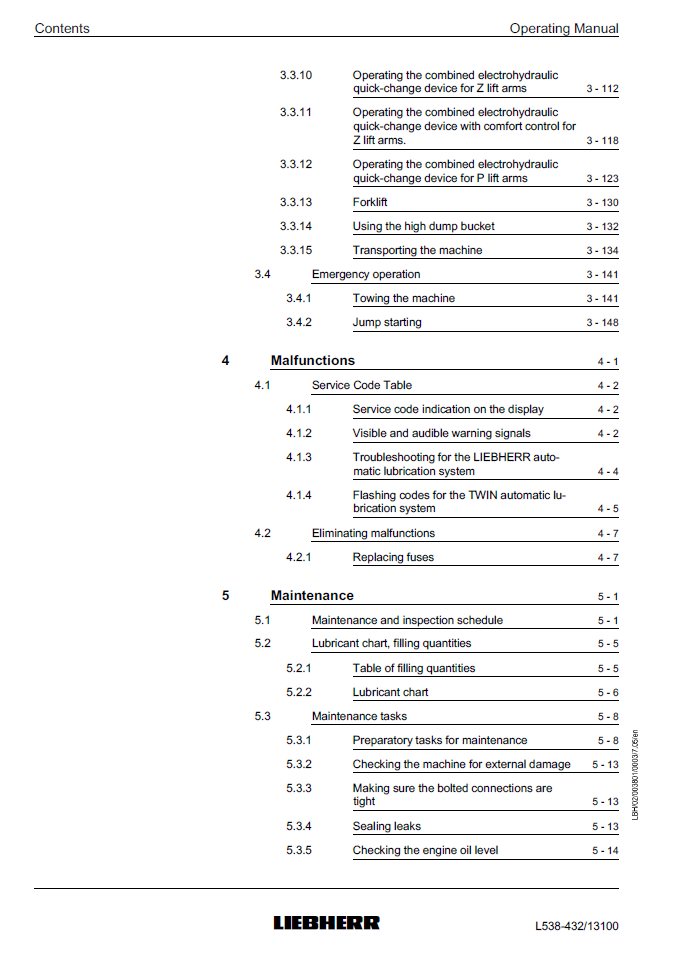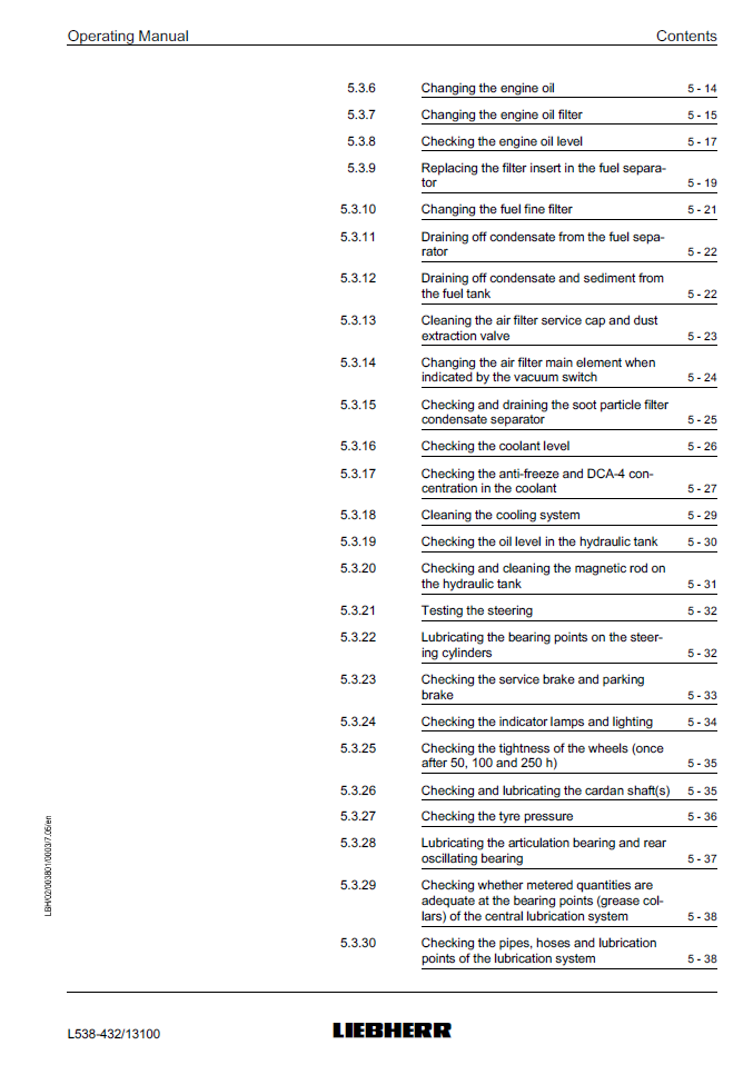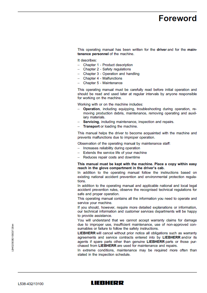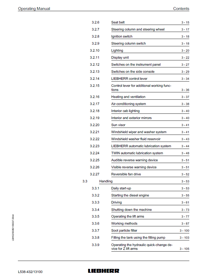 Liebherr L538-432 Wheel Loader Operating Manual from SN 13100