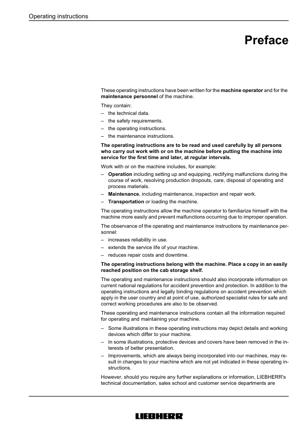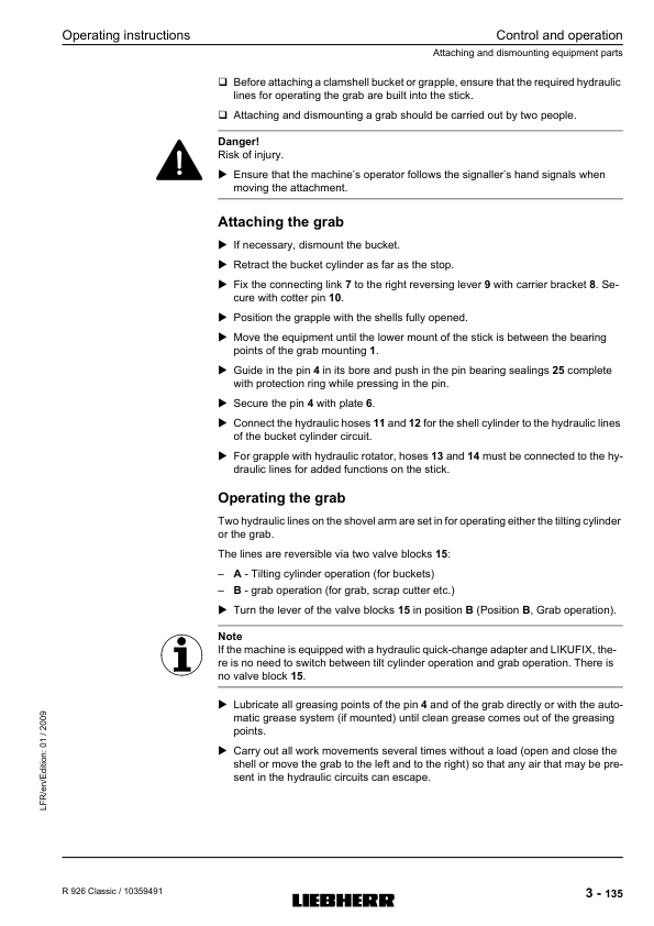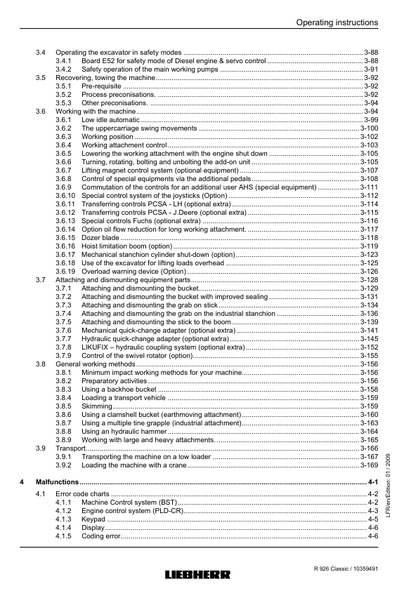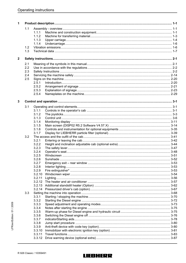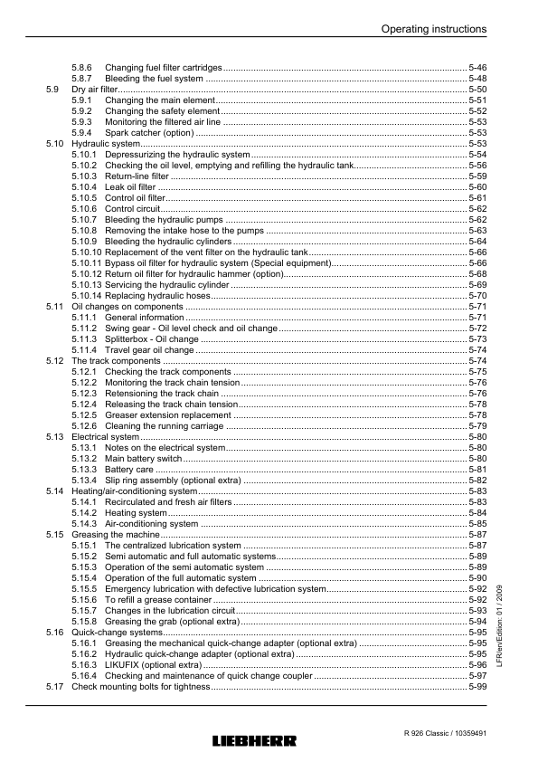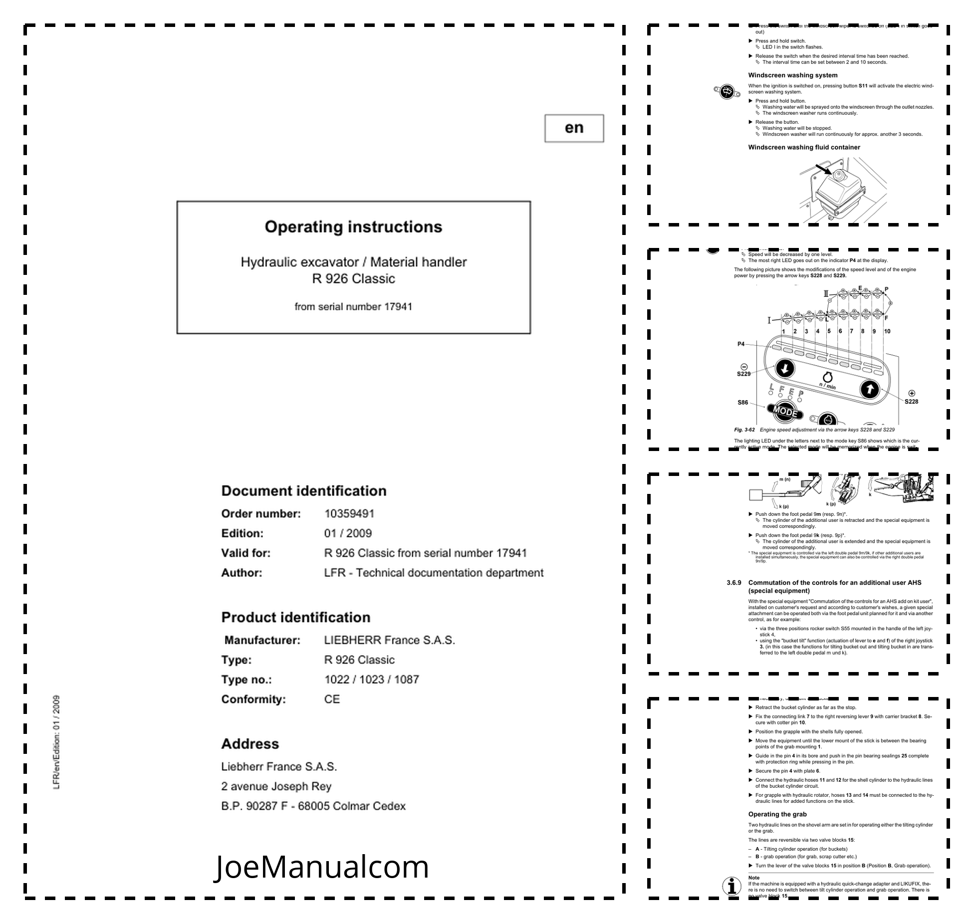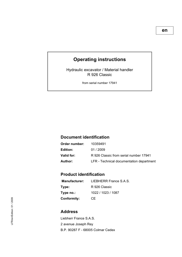 Liebherr R926 Excavator Operators Manual from SN 17941