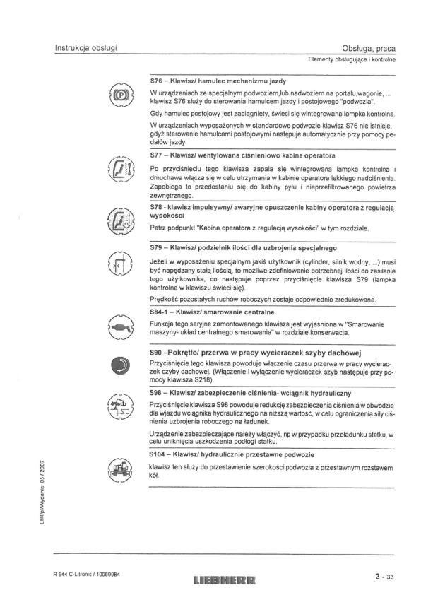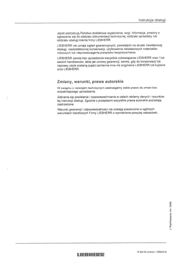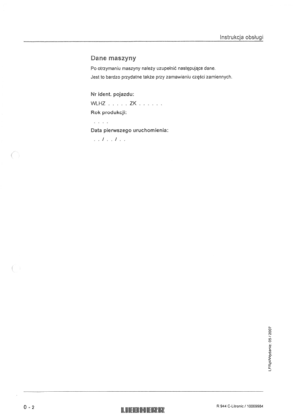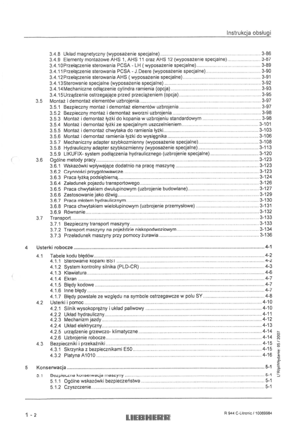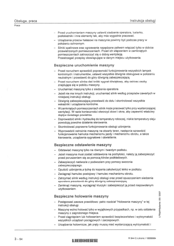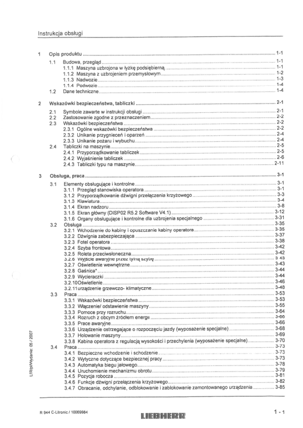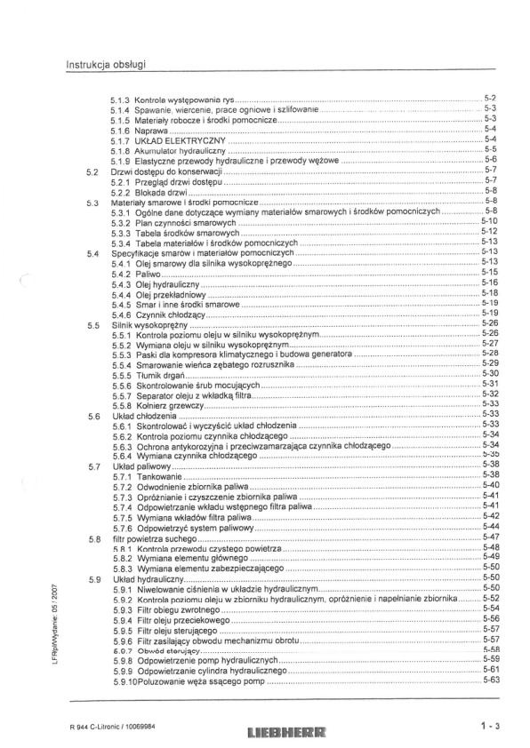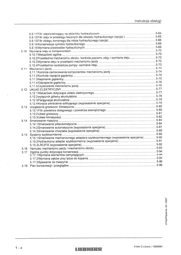 Liebherr R944B Litronic Excavator Operators Manual PL
