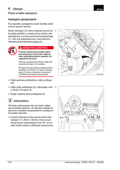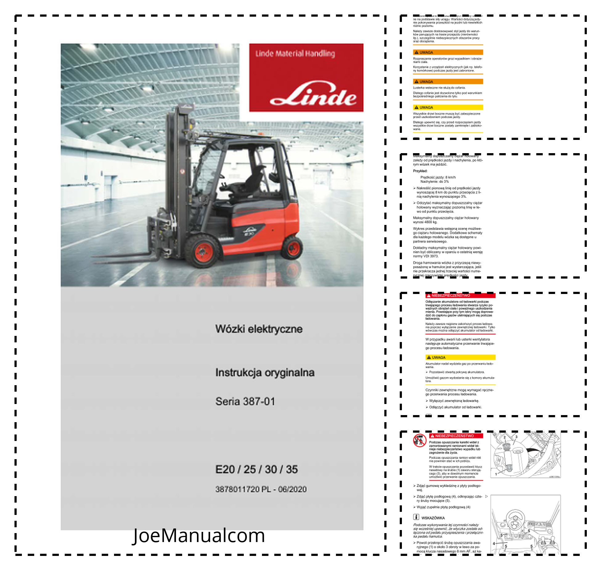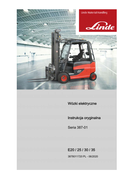 Linde E20 E25 E30 E35 387 01 Electric Forklift Truck Operators Manual PL