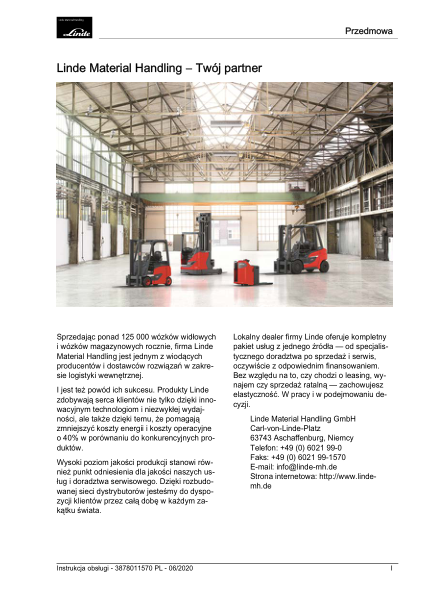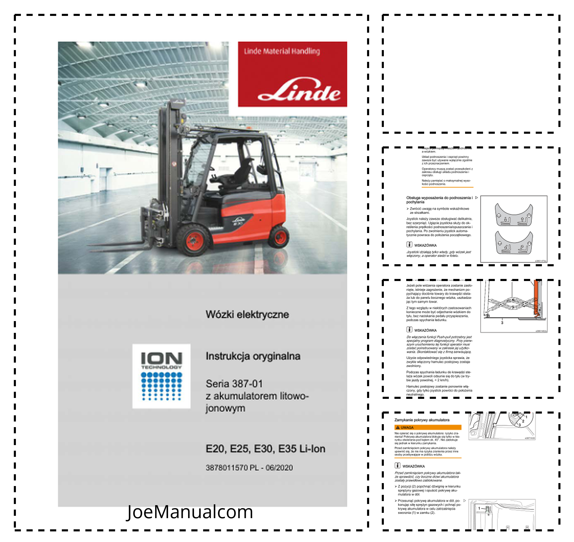 Linde E20 E25 E30 E35 387 01 Li Ion Electric Forklift Truck Operators Manual PL