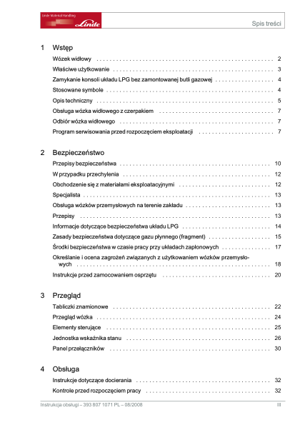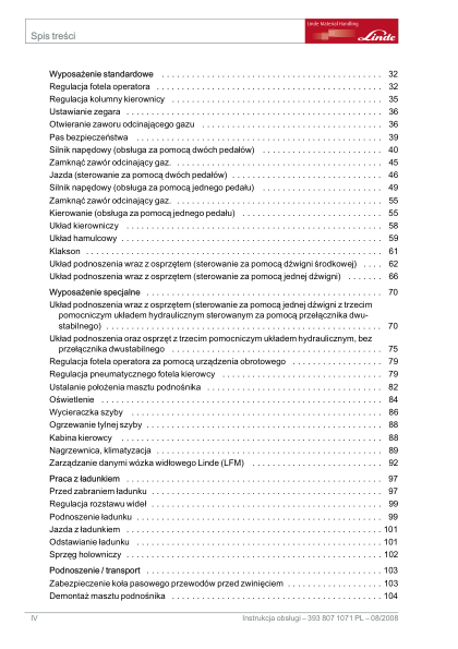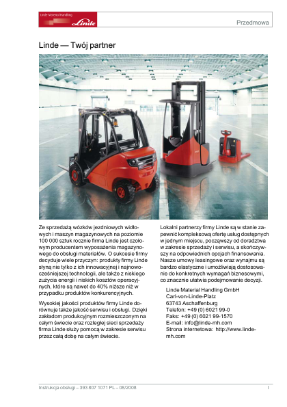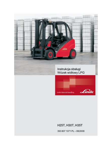 Linde H25T H30T H35T Forklift Operation Manual
