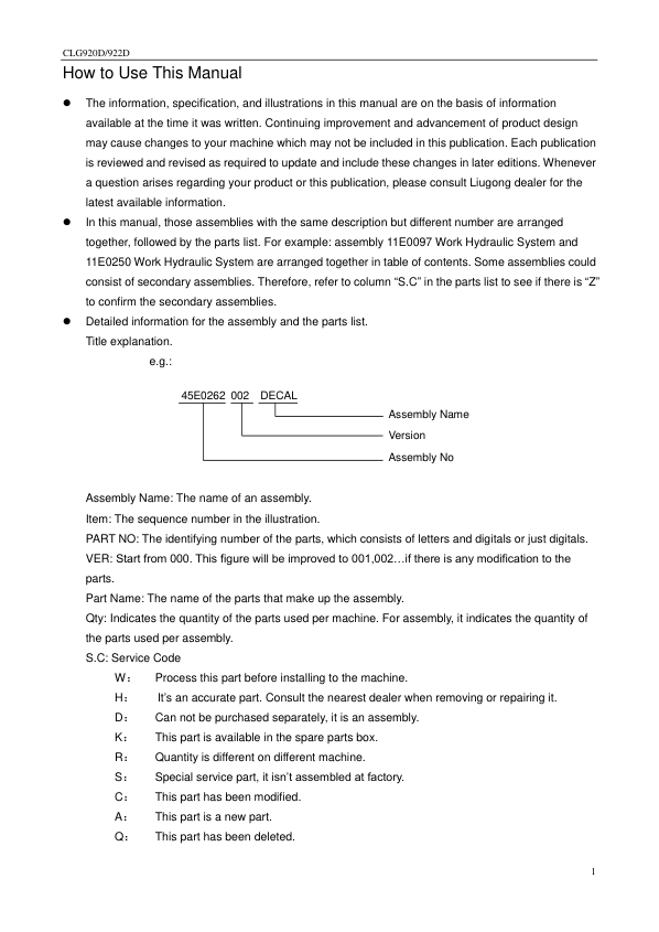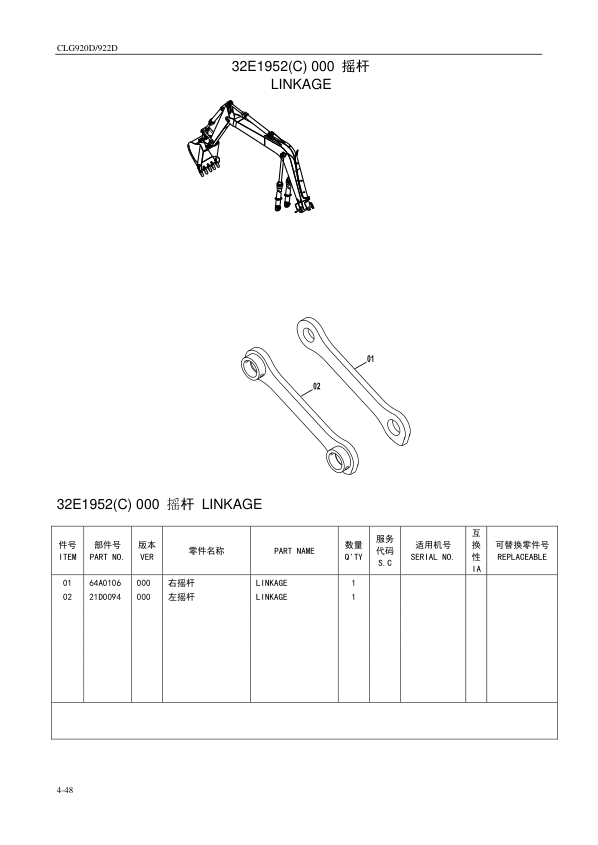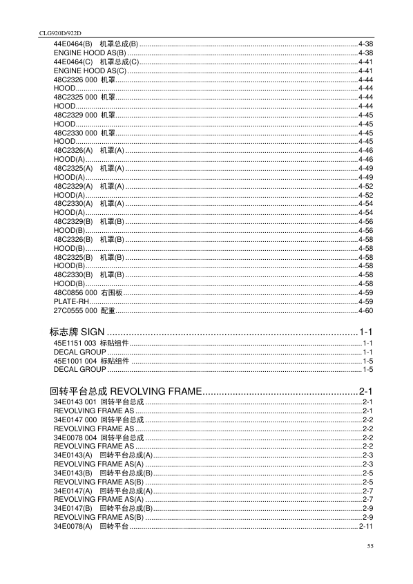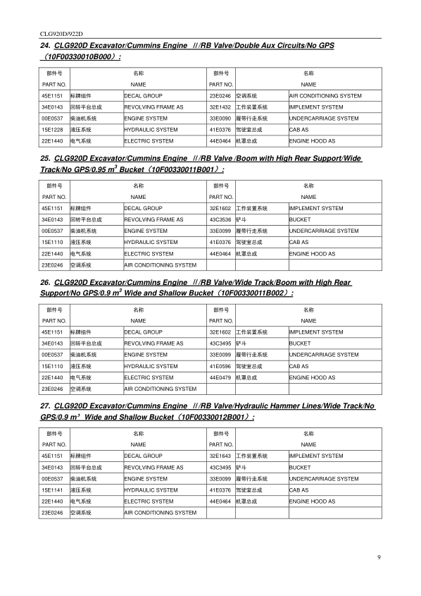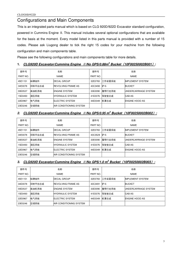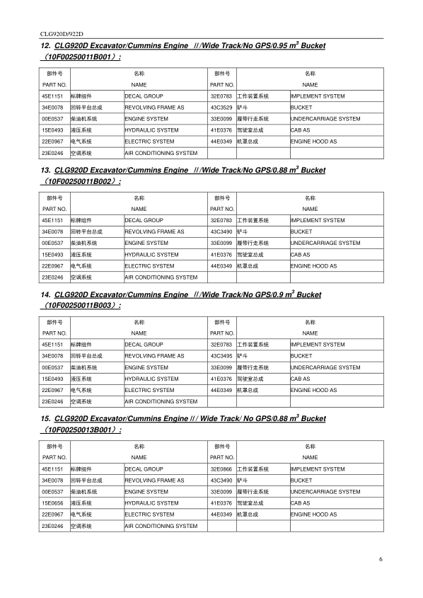 LiuGong CLG920D 922D Hydraulic Excavator Parts Catalog SN 33001 and Up