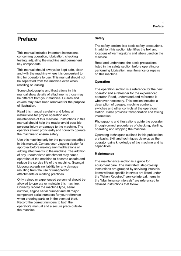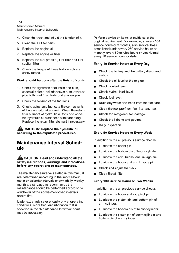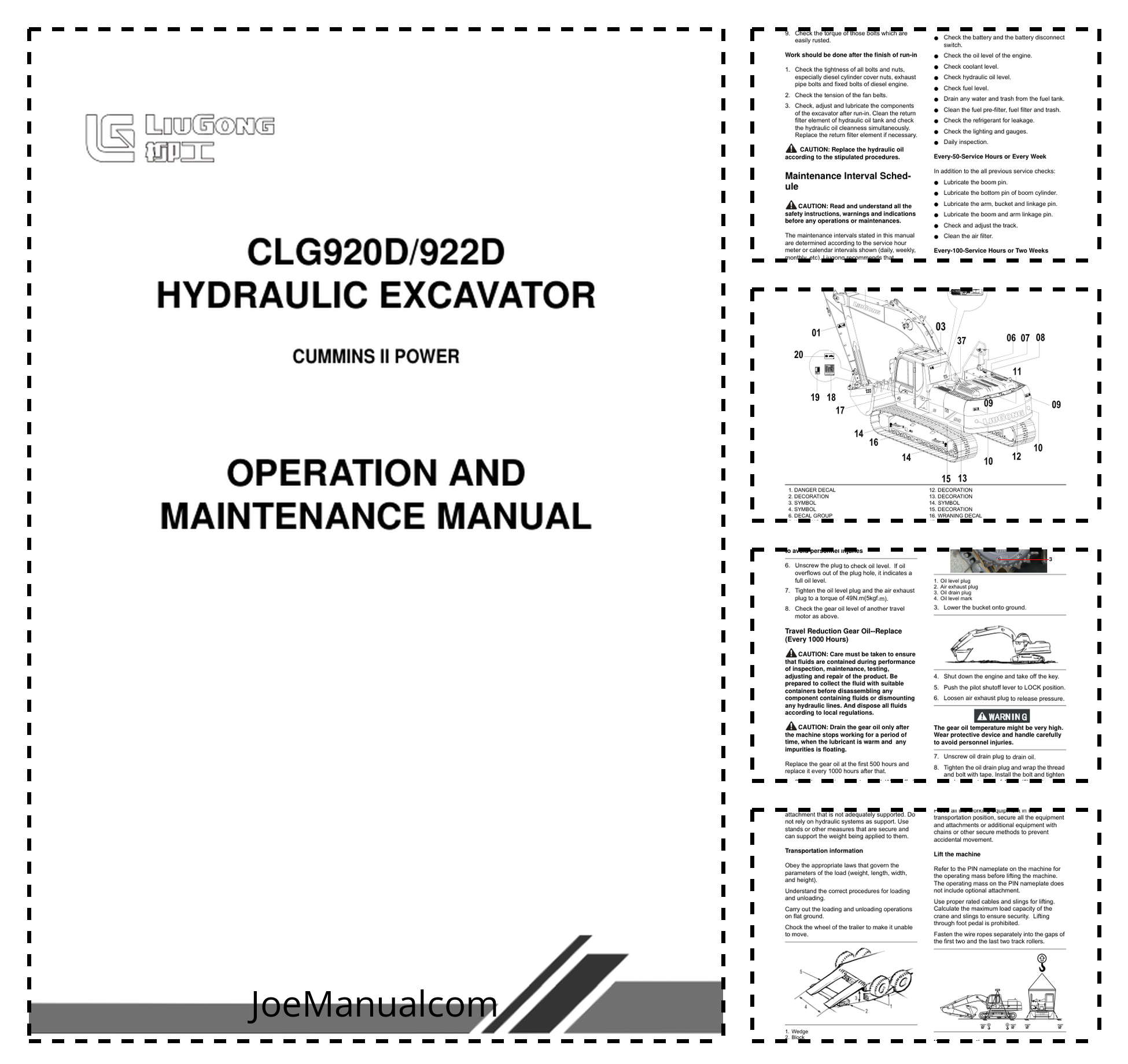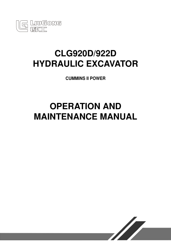 LiuGong CLG920D CLG922D Hydraulic Excavator Operation and Maintenance Manual