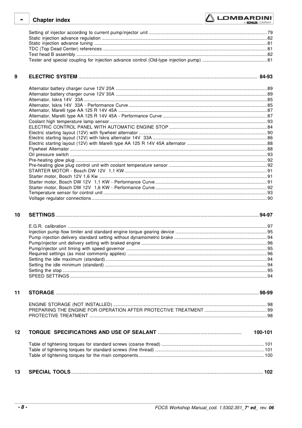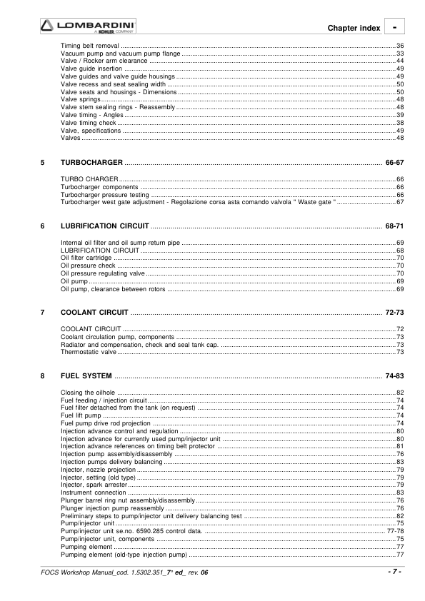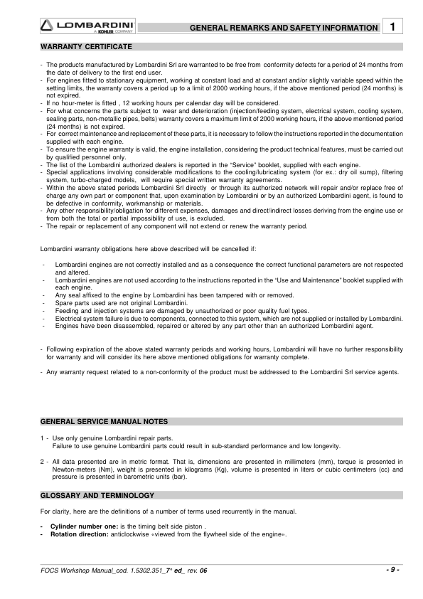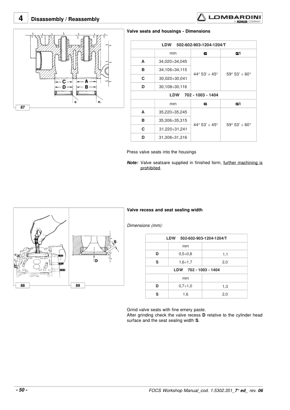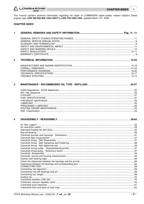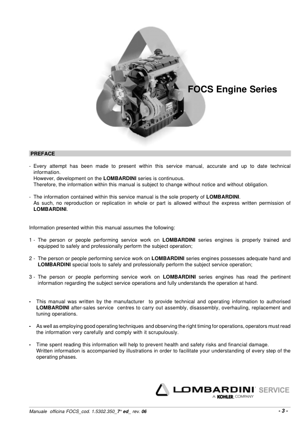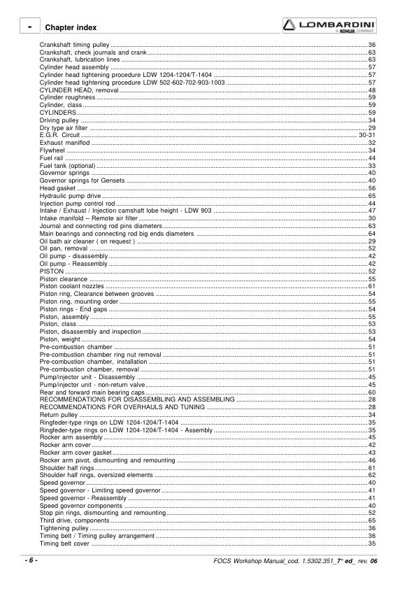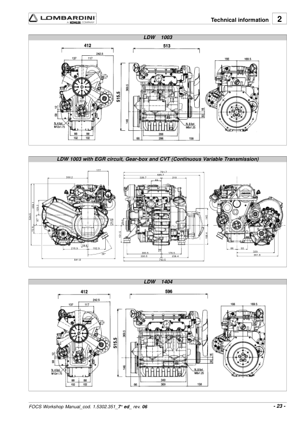 Lombardini FOCS LDW Series Engine Workshop Manual 9806/4005B