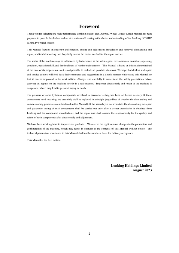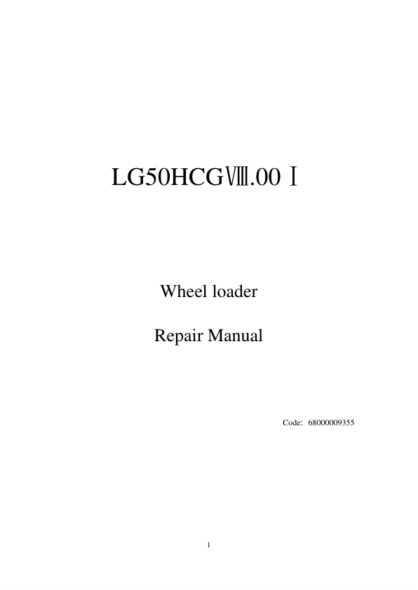 Lonking LG50HCG VIII Wheel Loader Repair Manual