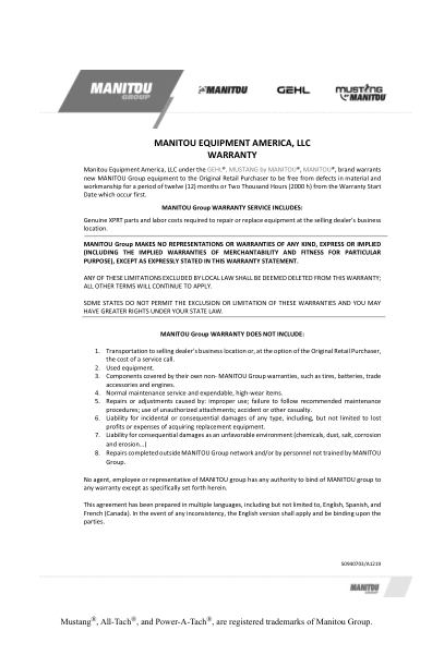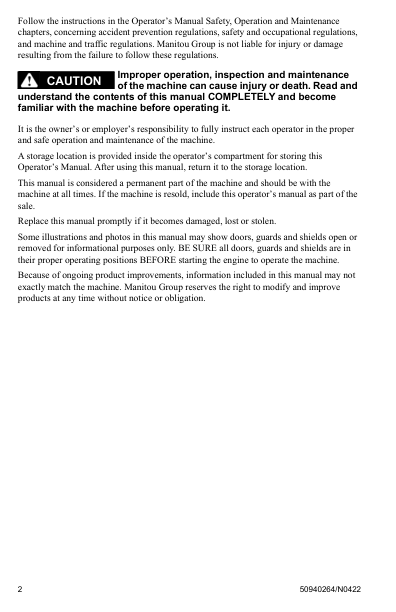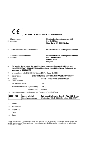 Manitou 1350R 1500R 1650R X-Series Skidsteer Operators Manual