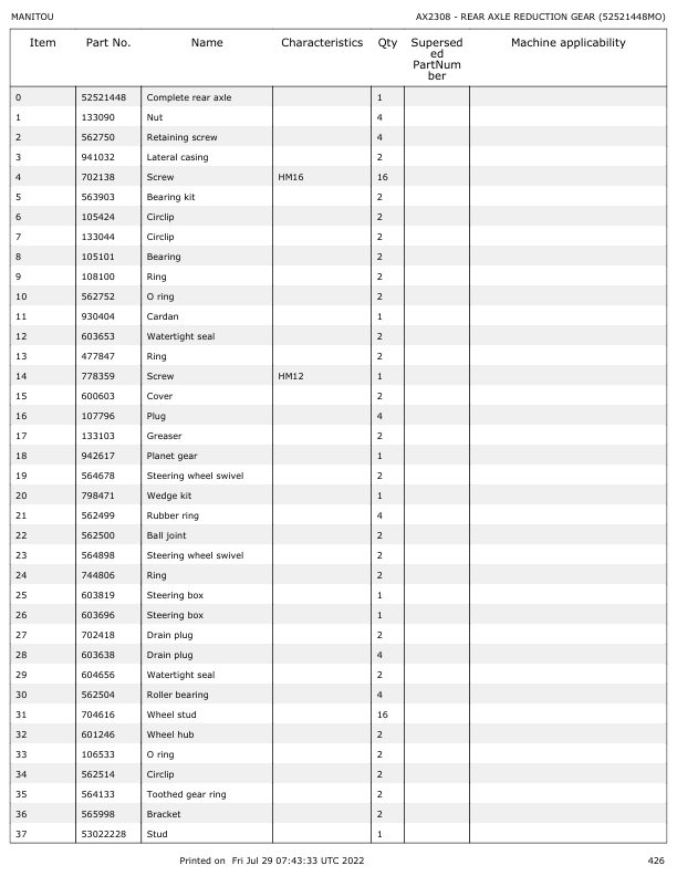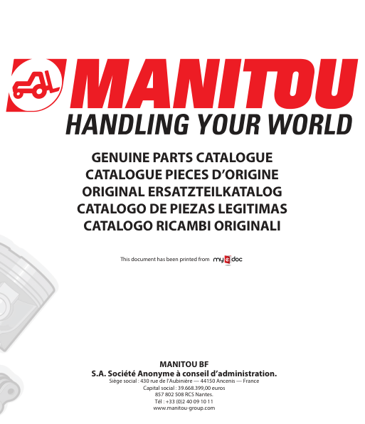 Manitou MLT 635 MLT 737 MLT 733 MLT 741 STS S1 Telehandler Parts Manual
