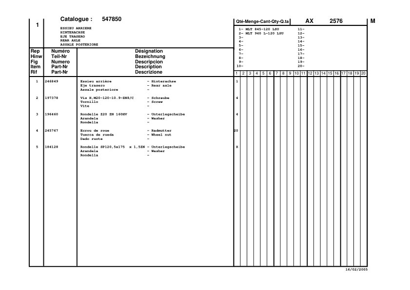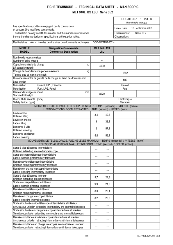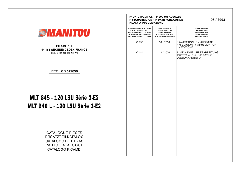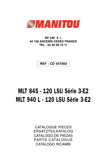 Manitou MLT 845 MLT 940 L 120 LSU Serie 3-E2 Telehandler Parts Catalog