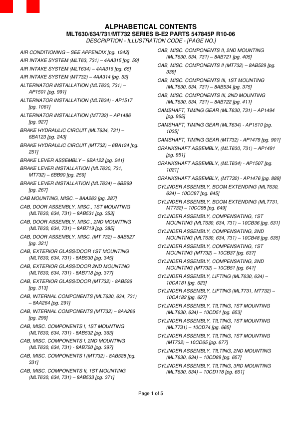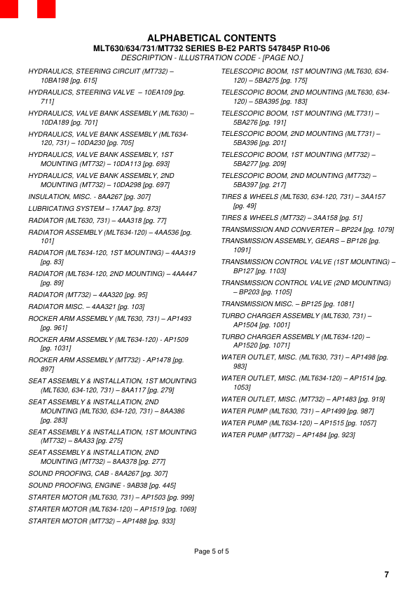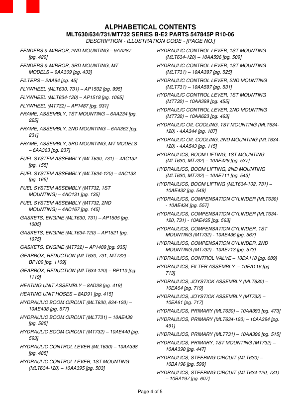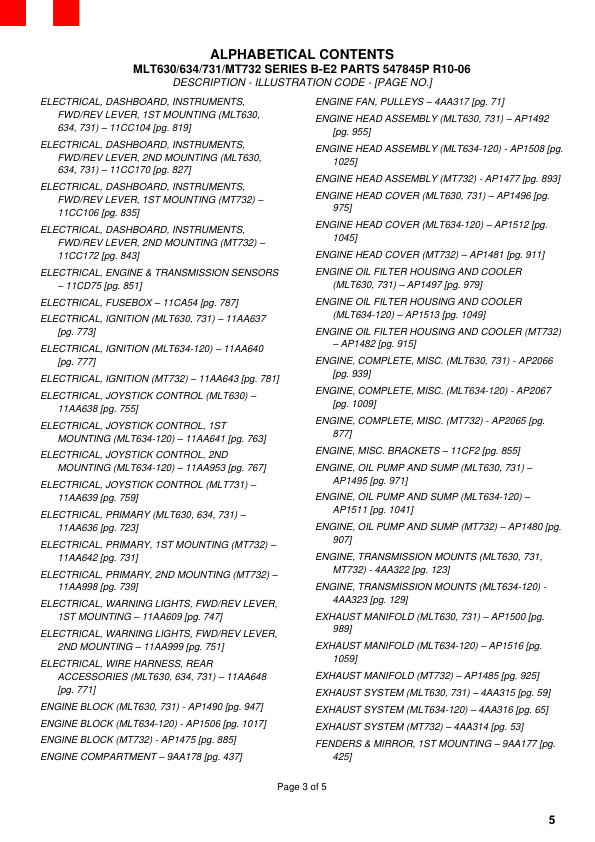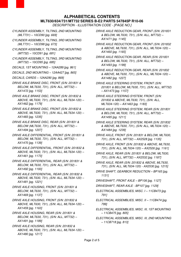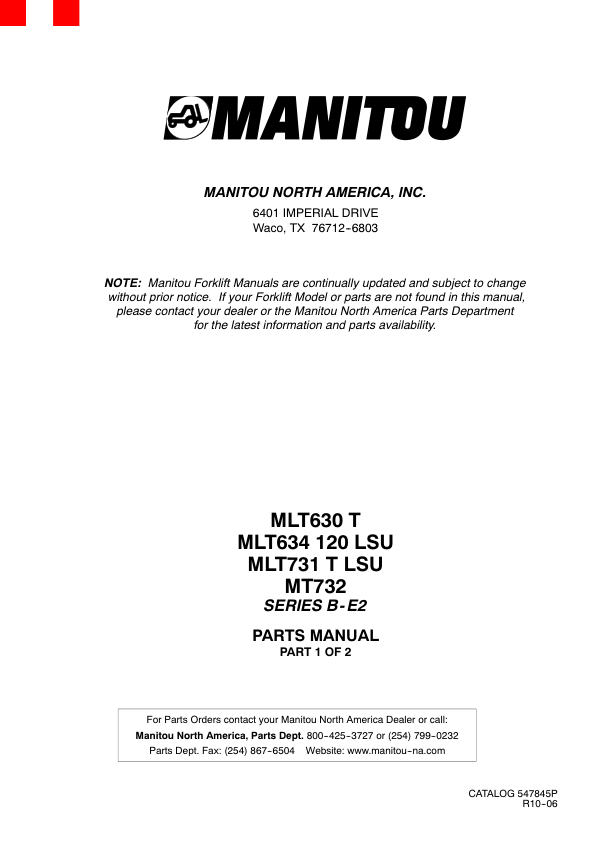 MLT630/634/731/MT732 SERIES B-E2 PARTS 547845P R10-06
