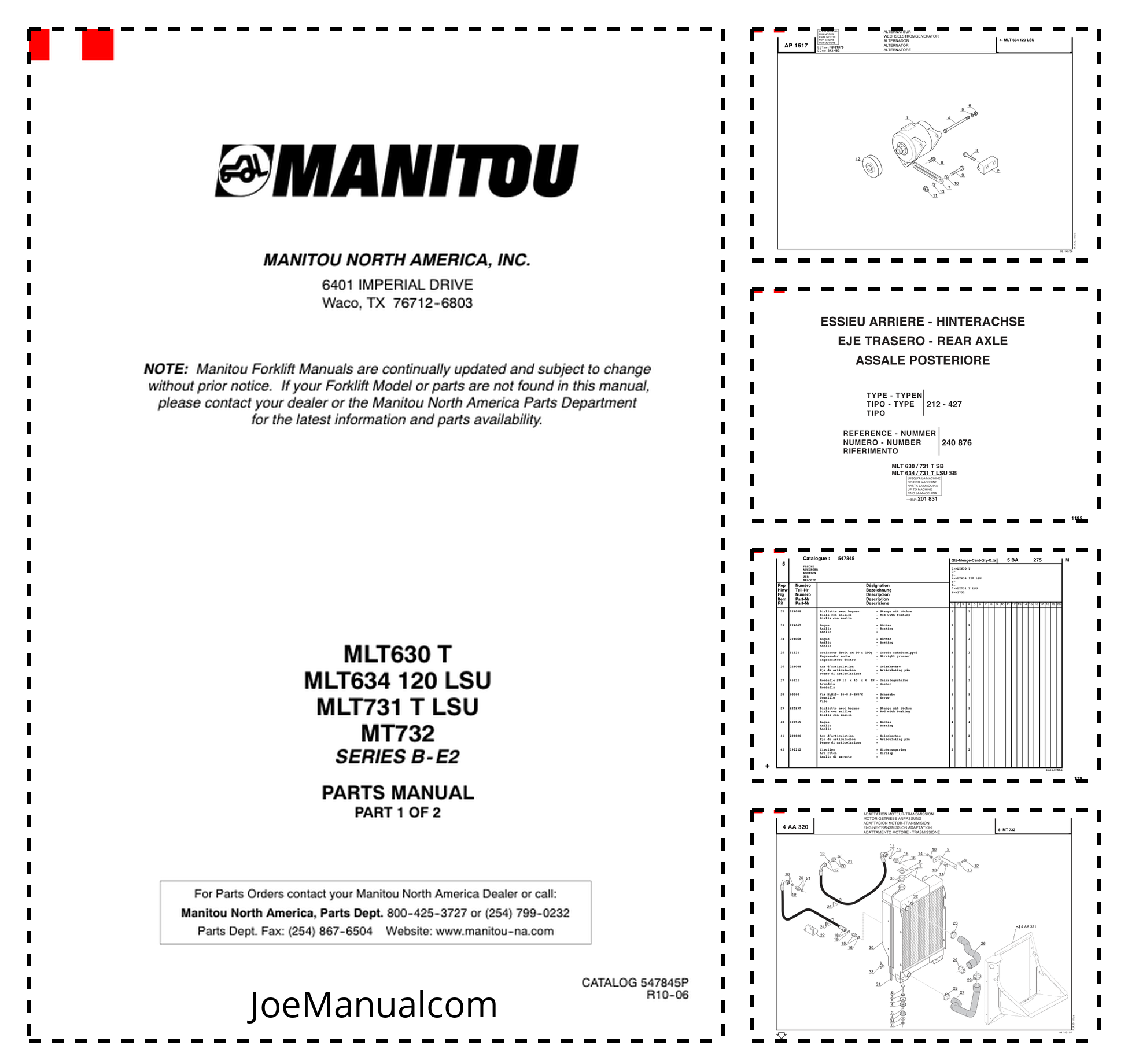 Manitou MLT630 T MLT634 120 LSU MLT731 T LSU MT732 Series B-E2 Telehandler Parts Catalog