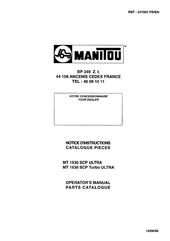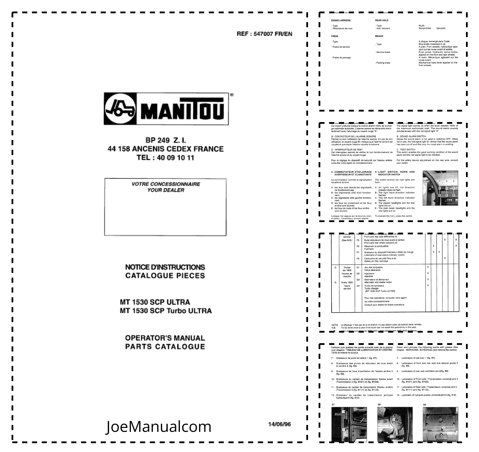 Manitou MT 1530 SCP Ultra Trubo Ultra Telehandler Operation Manual Parts Catalog