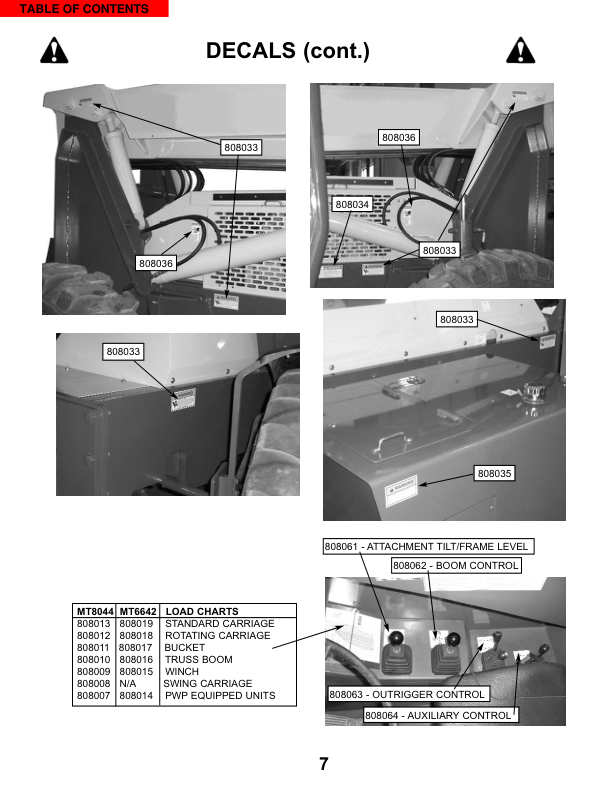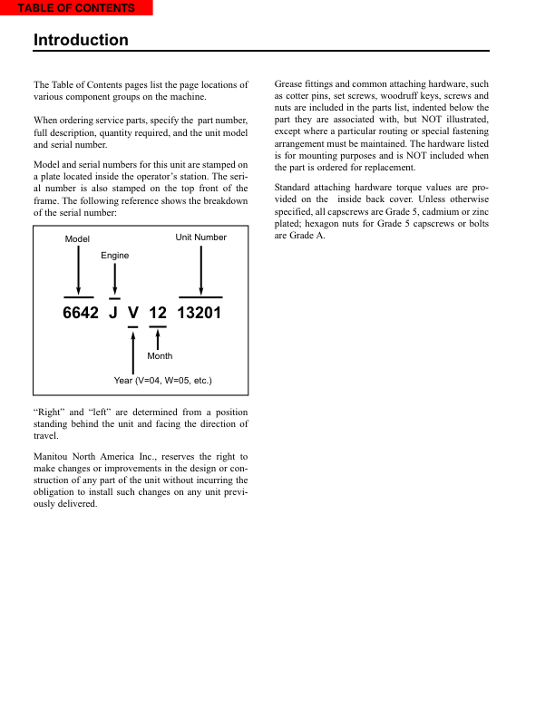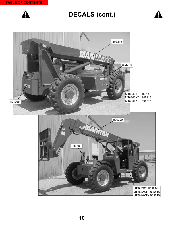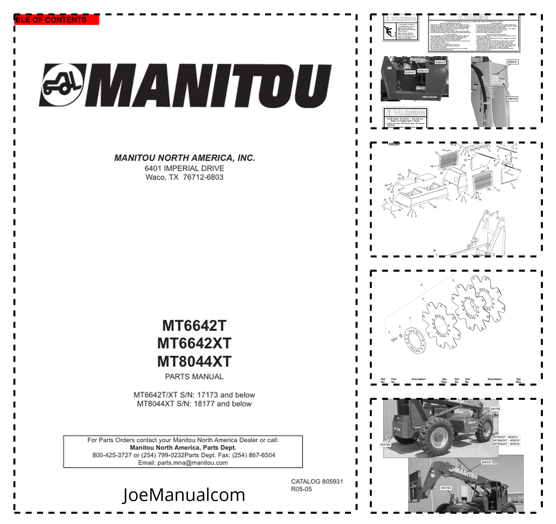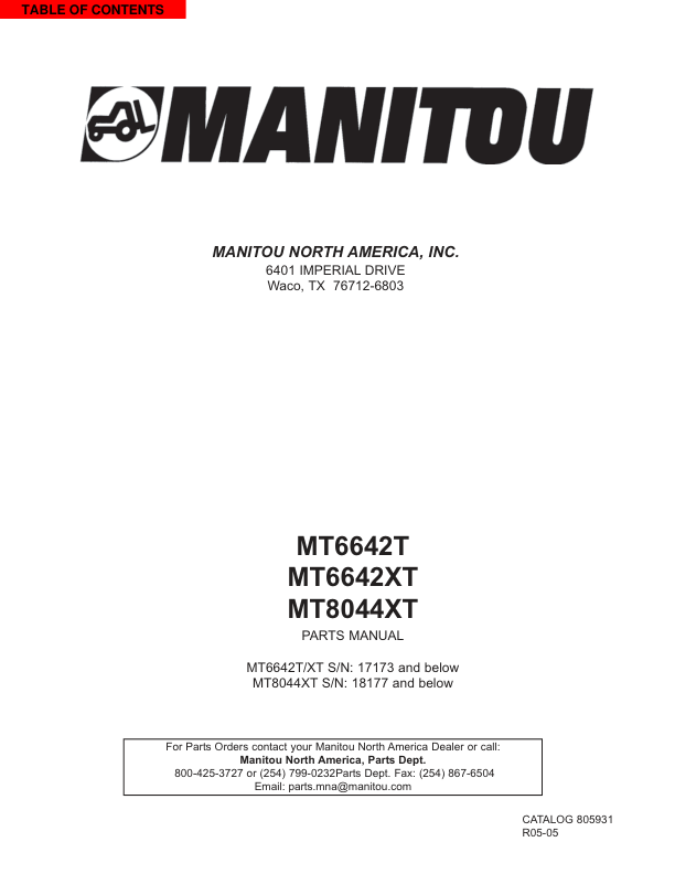 Manitou MT6642T MT6642XT MT8044XT Telehandler Parts Catalog SN 17173 and 18177 and Below