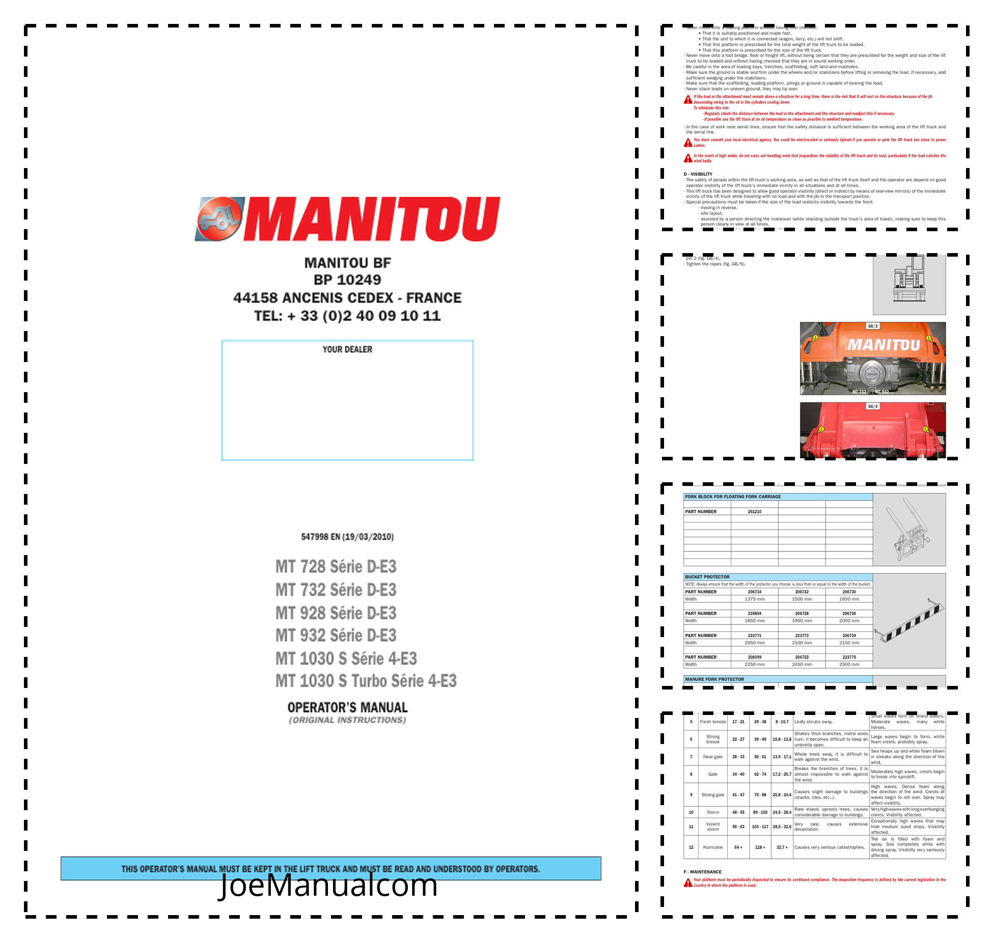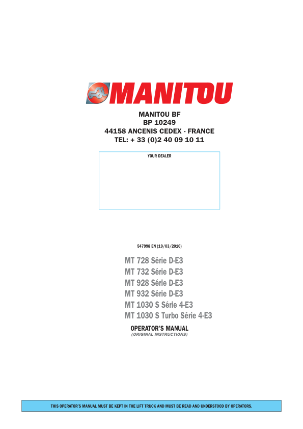 Manitou MT728 MT732 MT928 MT932 MT 1030 MT1030 Serie D-E3 4-E3 Telehandler Operators Manual