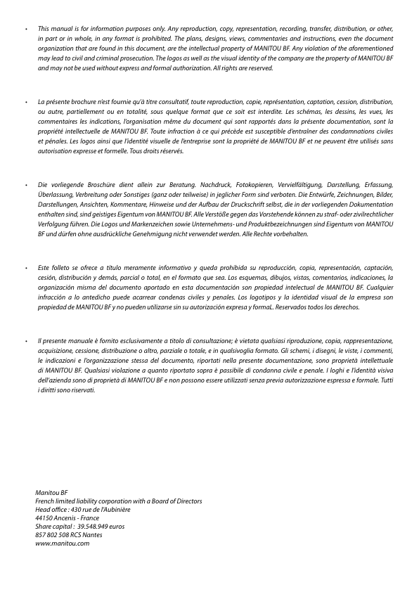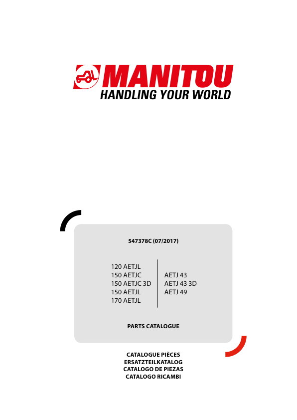 Manitou120 AETJ 150 AETJ 3D 170 AETJL 43 3D 49 Electric Boom Lift Parts Catalog