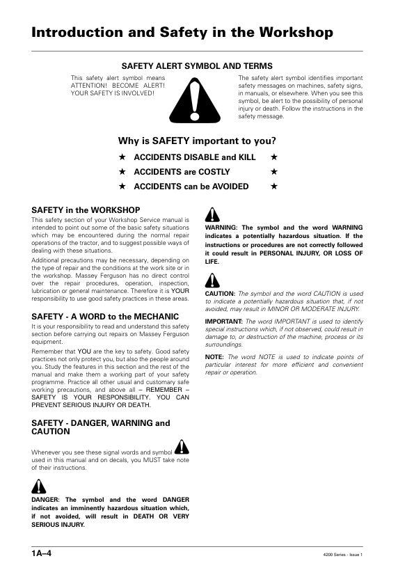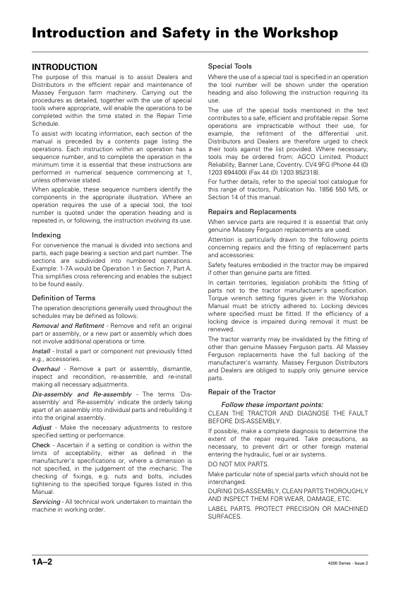 Massey Ferguson 4200 Series Tractor Workshop Manual