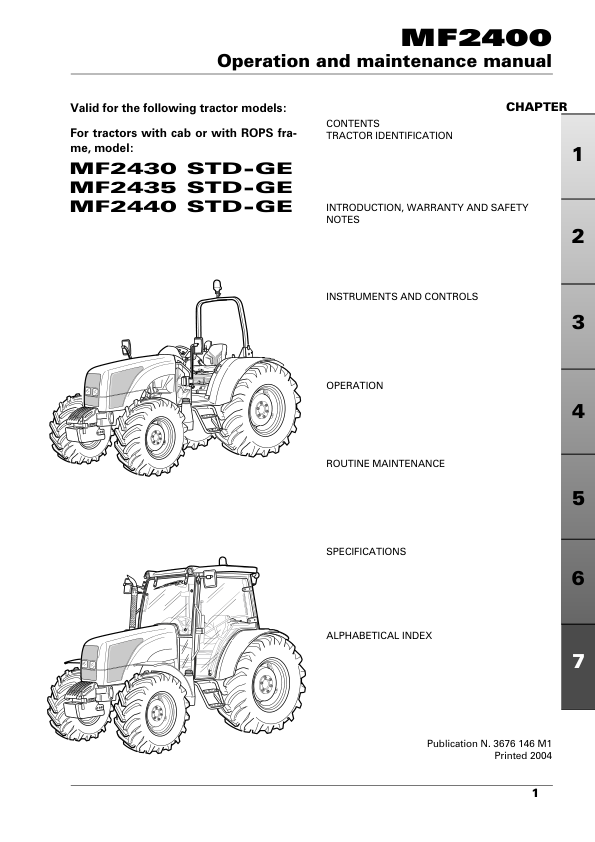 Massey Ferguson MF 2430 2435 2440 Tractor Operator and Maintenance Manual