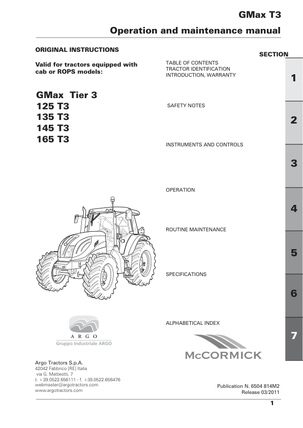 McCormick GMax 125T3 135T3 145T3 165T3 Tractor Operators Manual