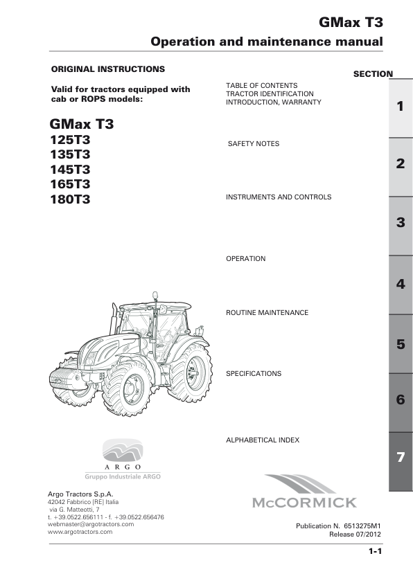 McCormick GMax T3 125T3 135T3 145T3 165T3 180T3 Tractors Operators Manual