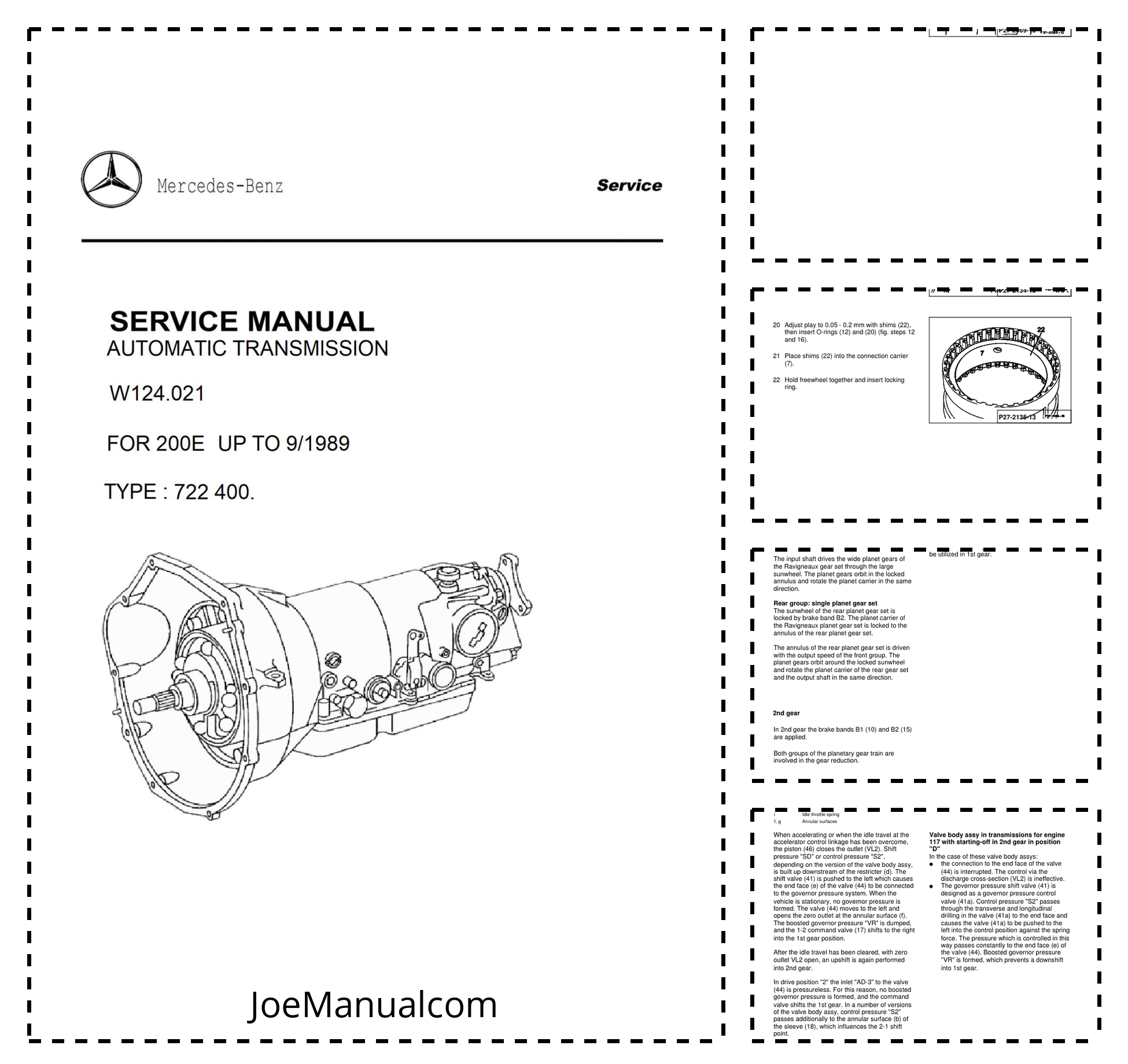 Mercedes-Benz W124.021 722.400 Automatic Transmission Service Manual
