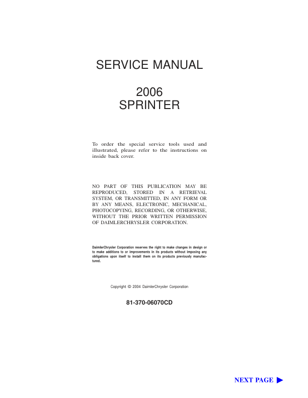 Mercedes Sprinter 2006 Service Manual