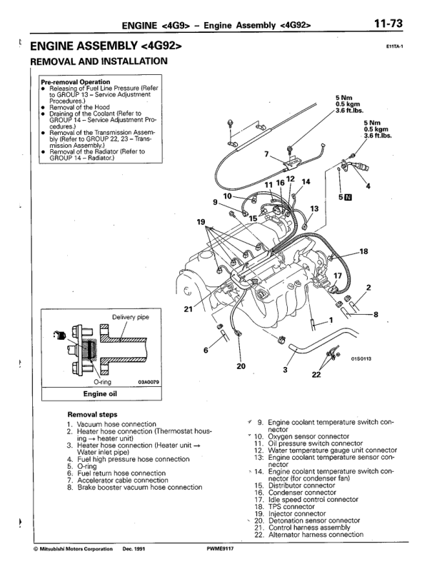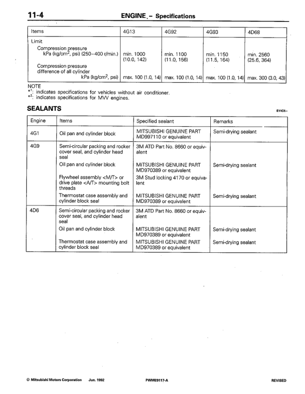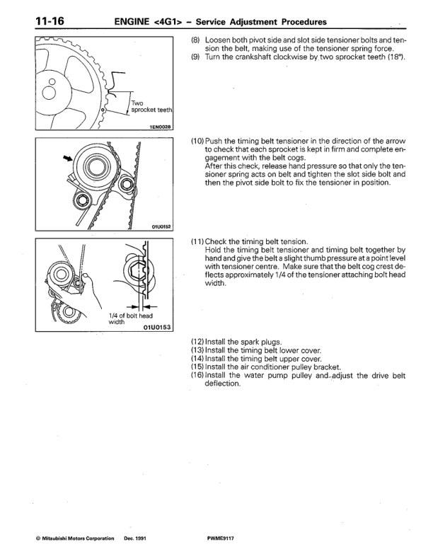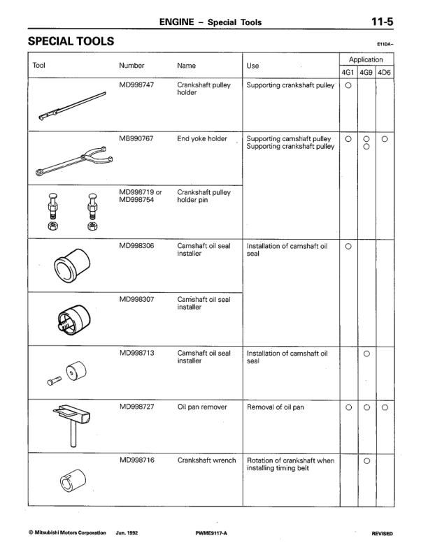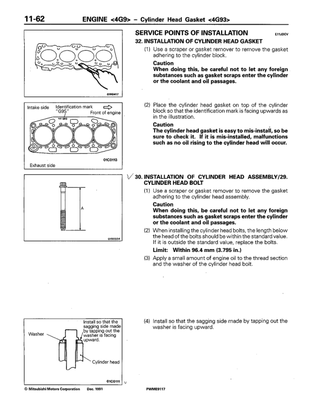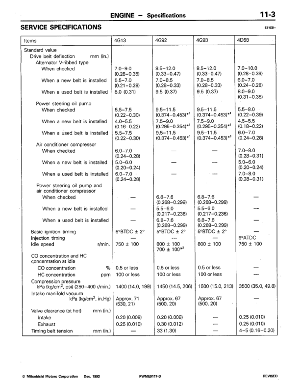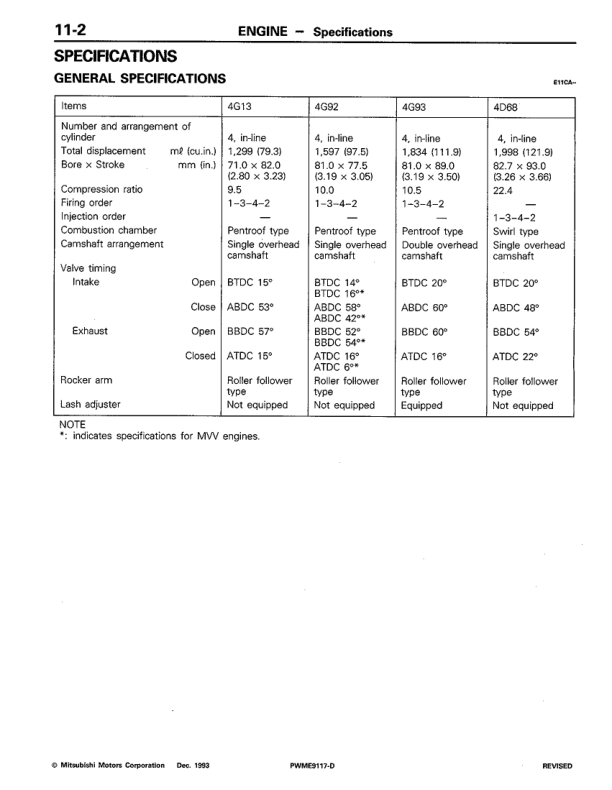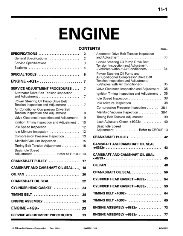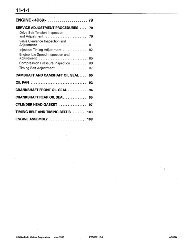 Mitsubishi Colt Lancer 4G1 4G9 4D68 Engine Workshop Manual