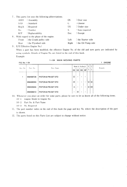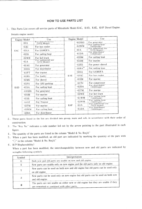 Mitsubishi K4C K4D K4E K4F Engine Parts Catalog