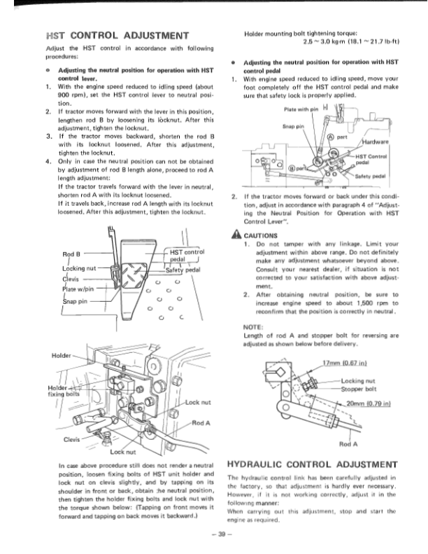 Mitsubishi MT180H MT180HD HST Tractors Operation Manual
