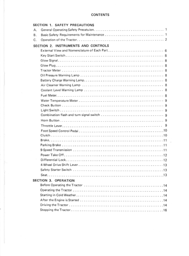 Mitsubishi MT280D MT300 MT300D Tractors Operation Manual