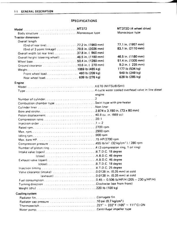 Mitsubishi MT372 MT372D Tractor Repair Manual