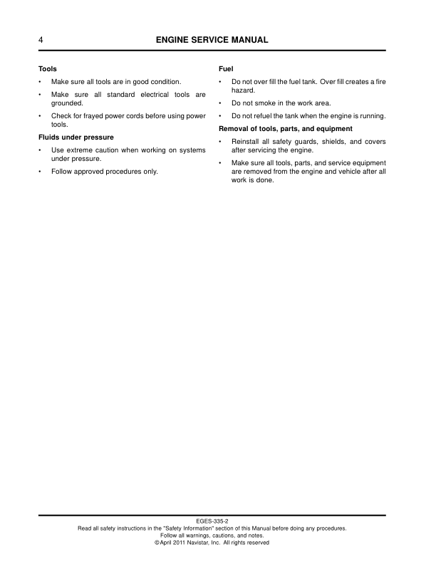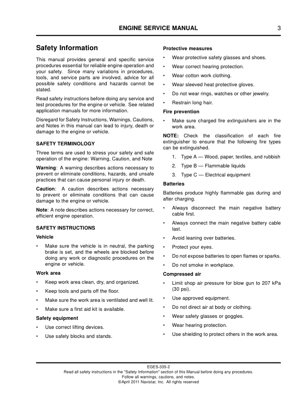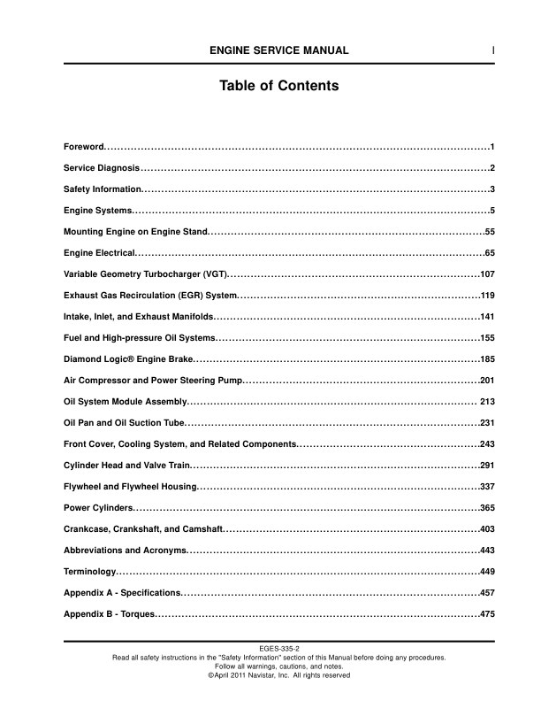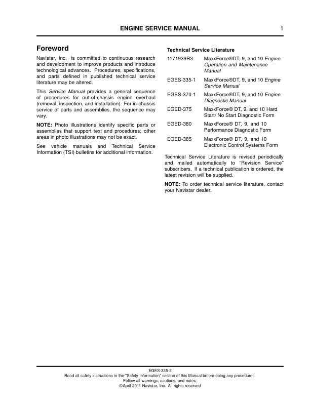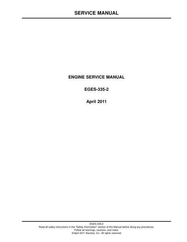 Navistar International DT9 DT10 Engine Service Manual EGES-335-2 provides comprehensive service and repair information for Navistar International DT9 and DT10 engines. This manual is an essential resource for technicians and mechanics, offering detailed procedures, diagrams, and specifications needed for proper engine maintenance and troubleshooting. It covers a wide range of topics, including engine disassembly, component inspection, assembly, and diagnostics, ensuring accurate and efficient repairs.