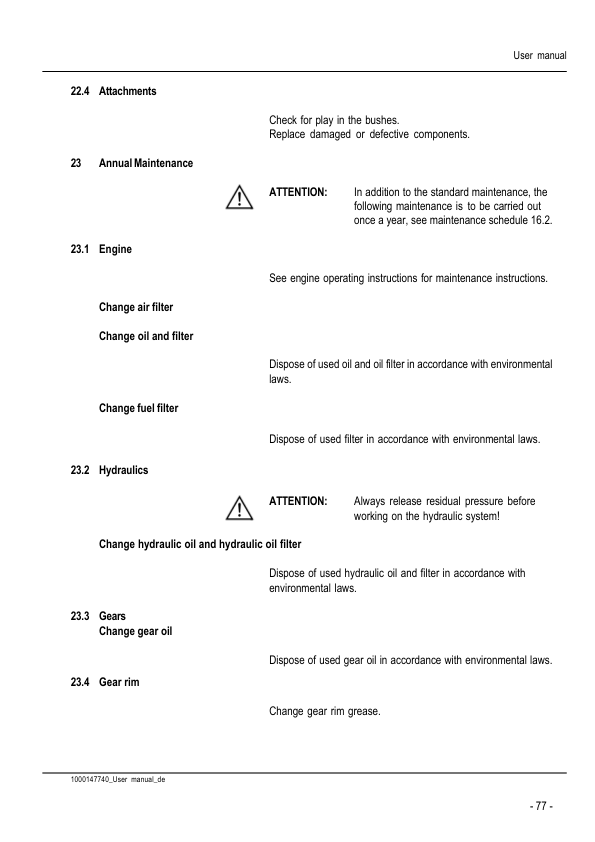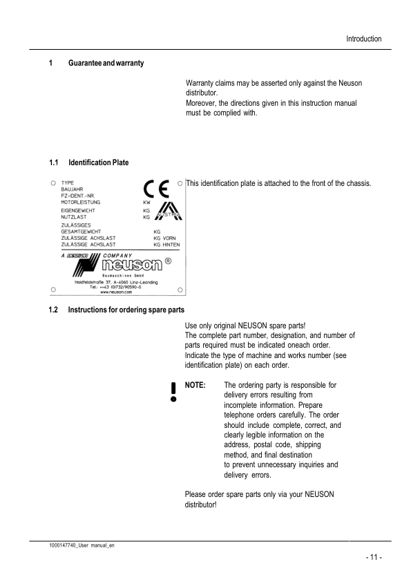 Neuson 1403 1503 1903 2203 Track Excavator Operators Manual