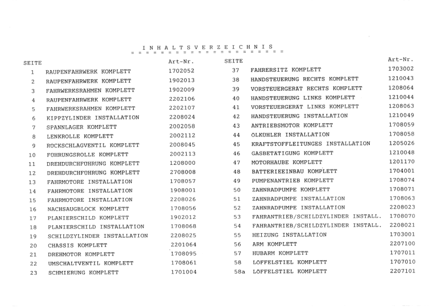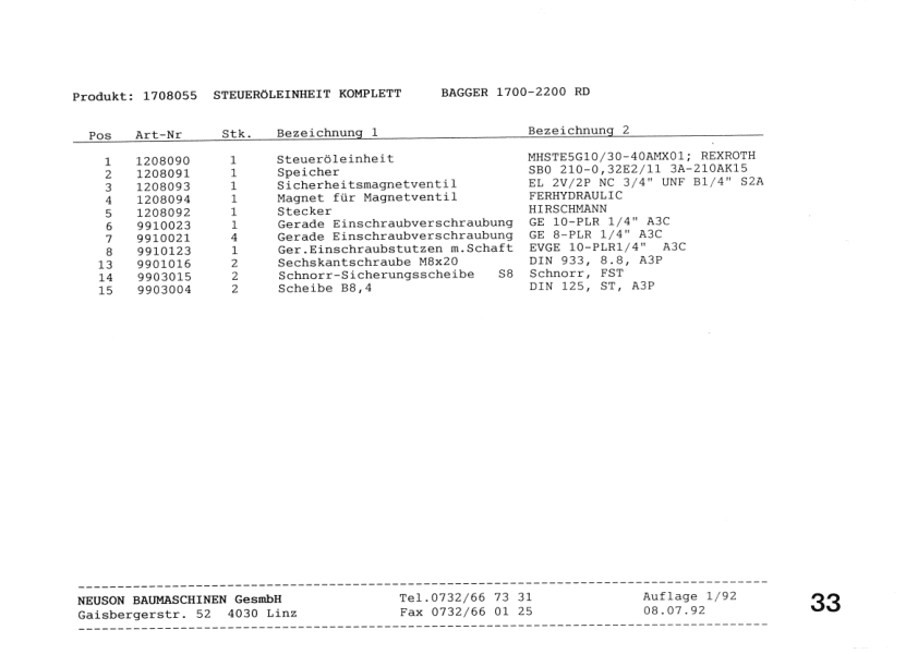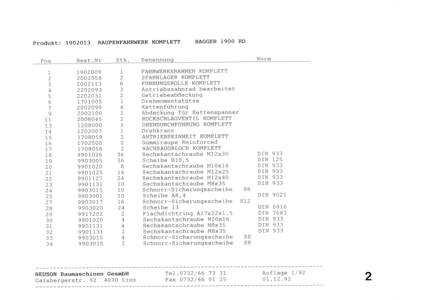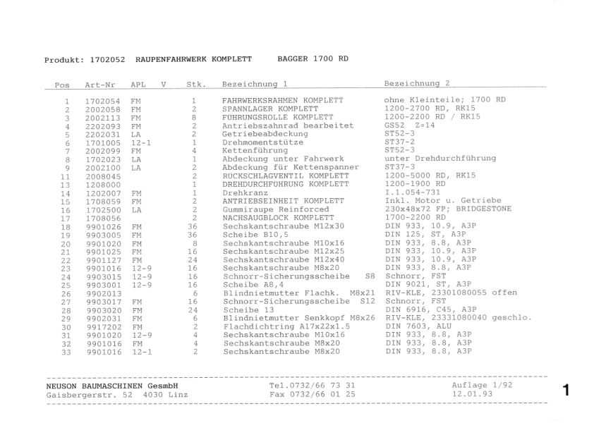 Neuson 1700 1900 2200 RD Crawler Excavator Parts Catalog