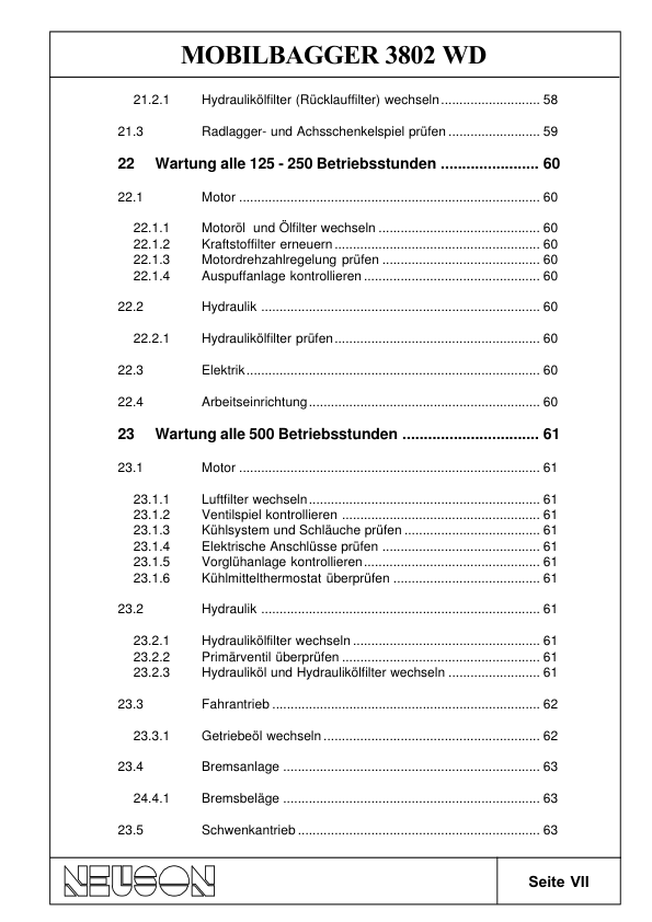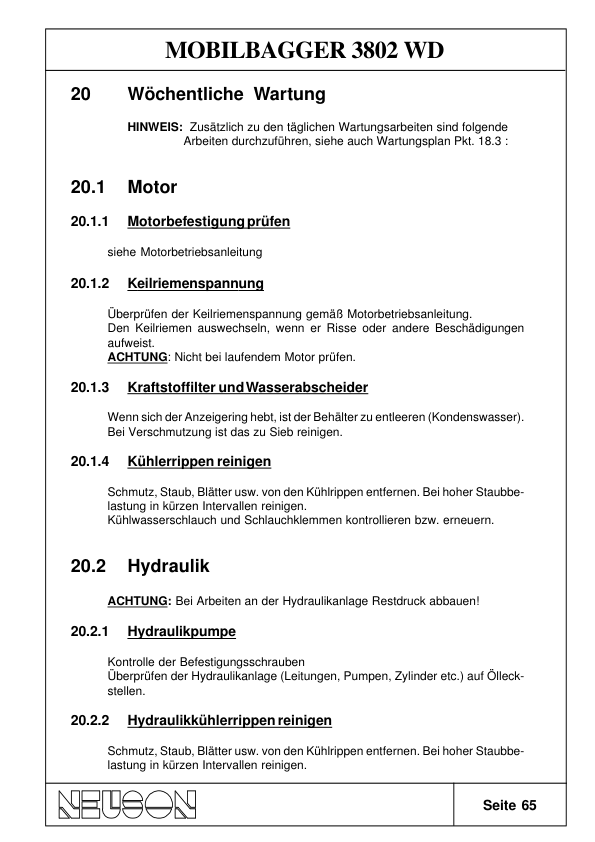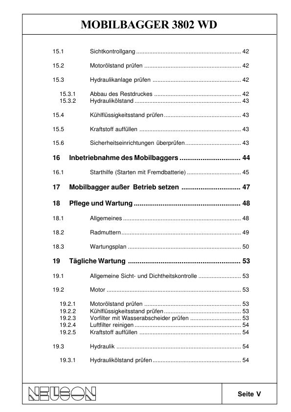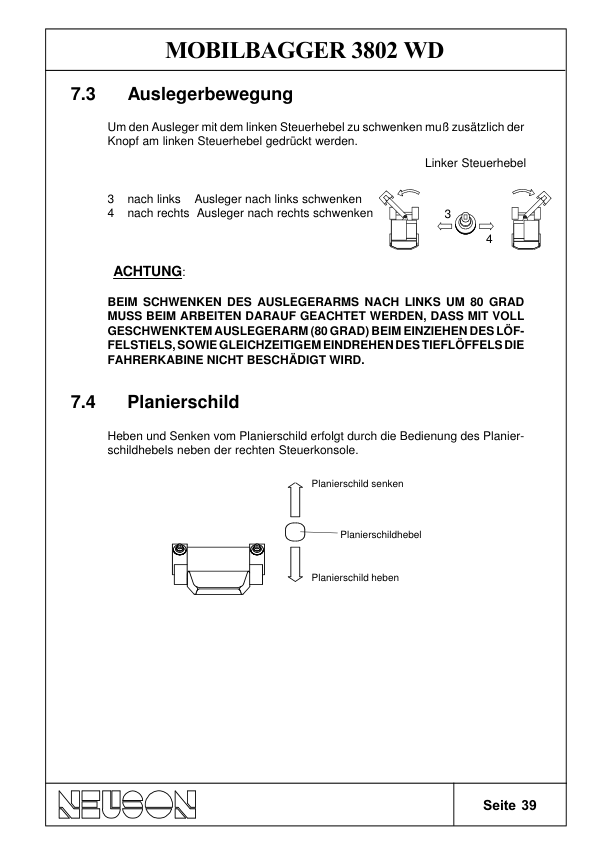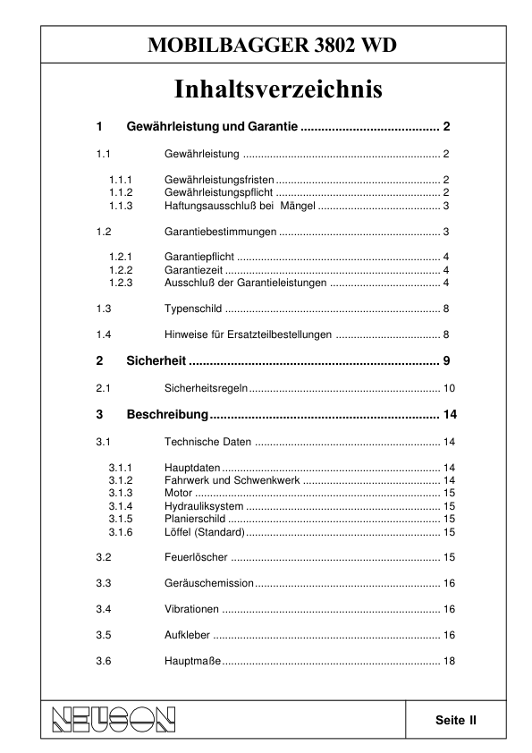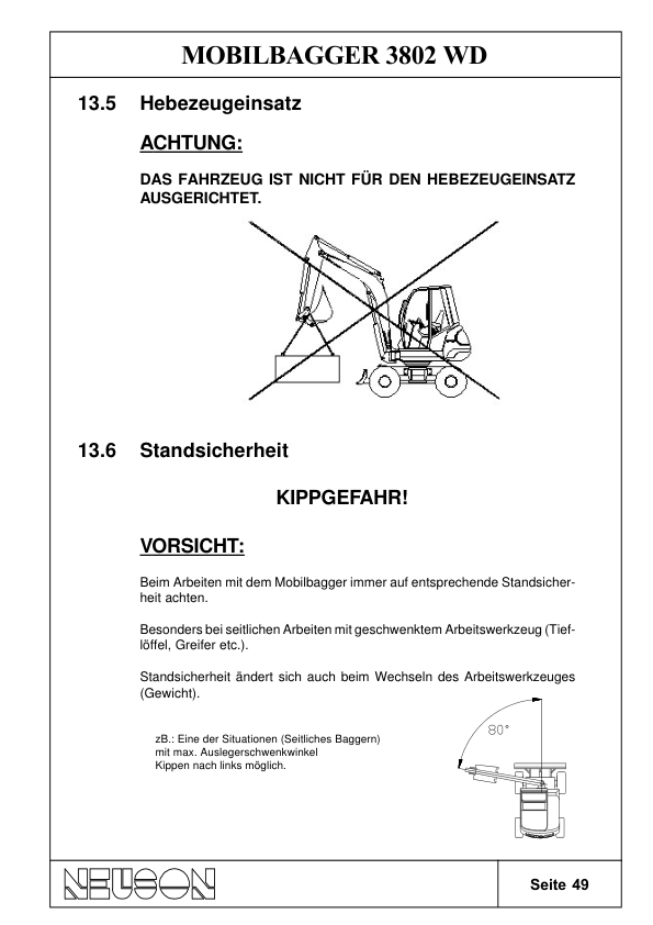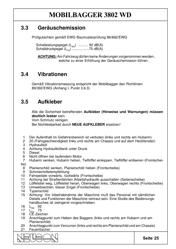 Neuson 3802 Mobile Excavator Operators Manual