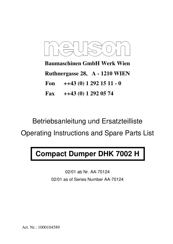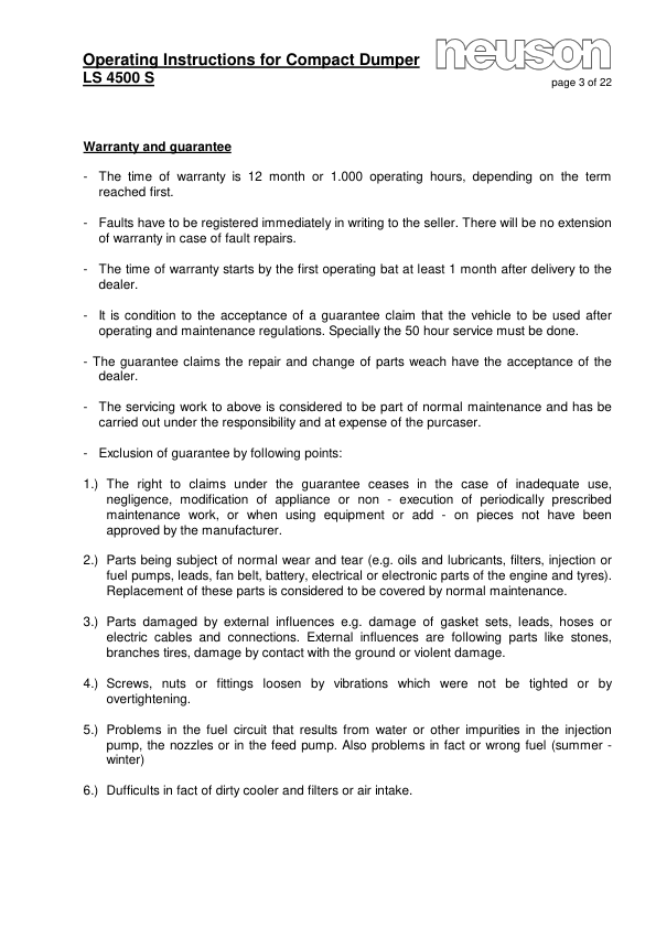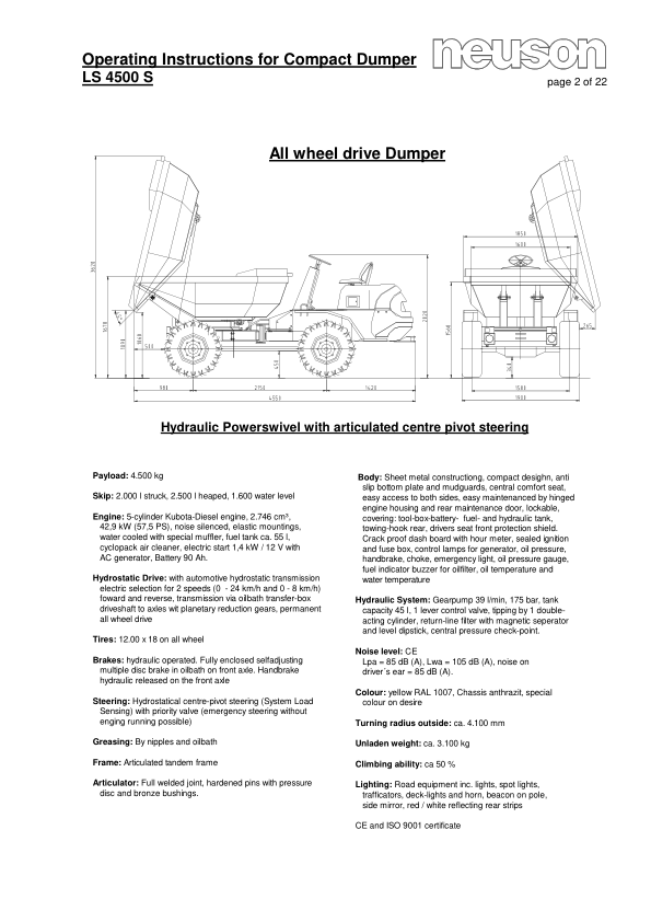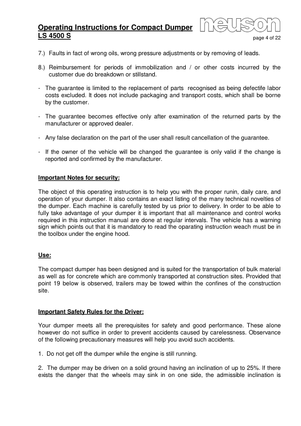 Neuson 4500 7002 Dumper Operators Manual