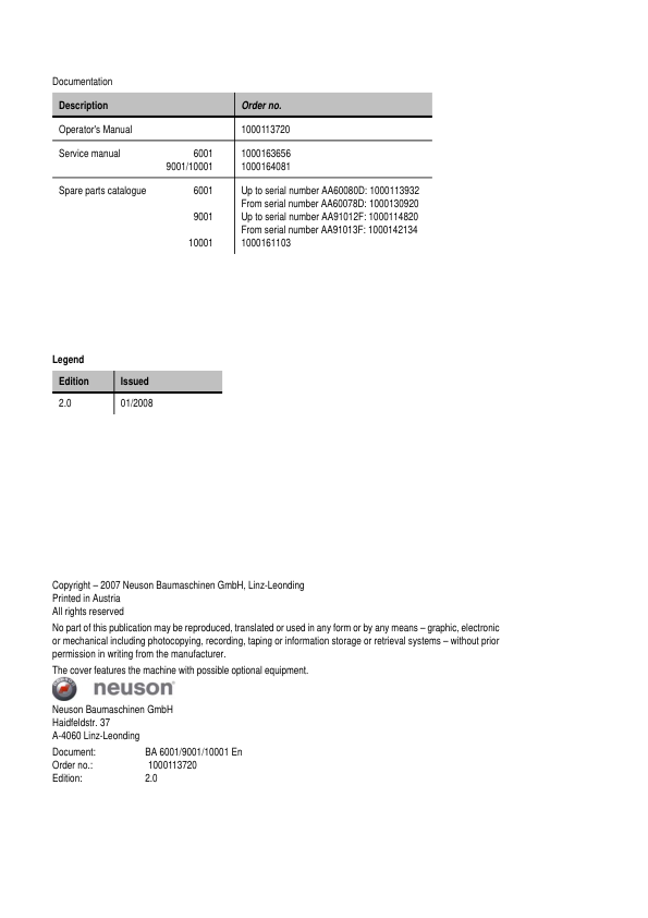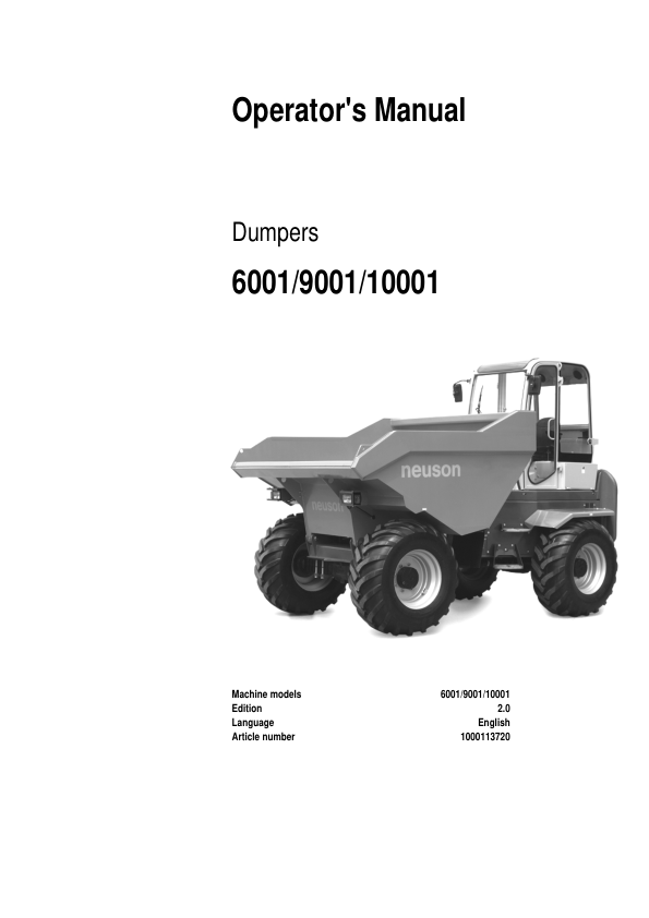Neuson 6001 9001 10001 Dumper Operators Manual Rev 2