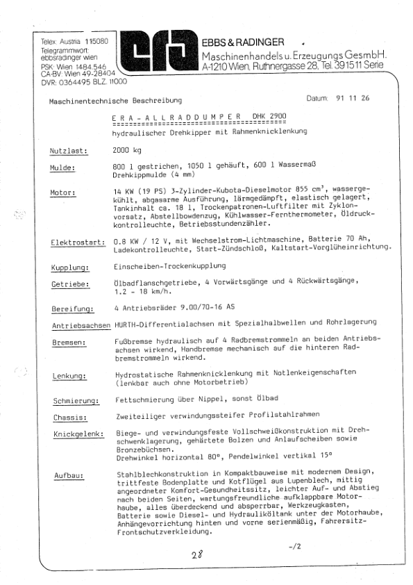 Neuson DHK 2900 Dumper Parts Catalog