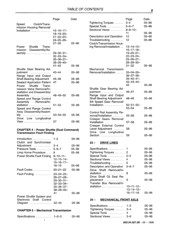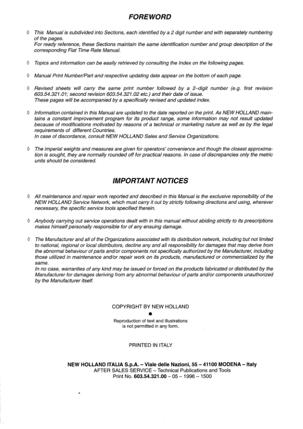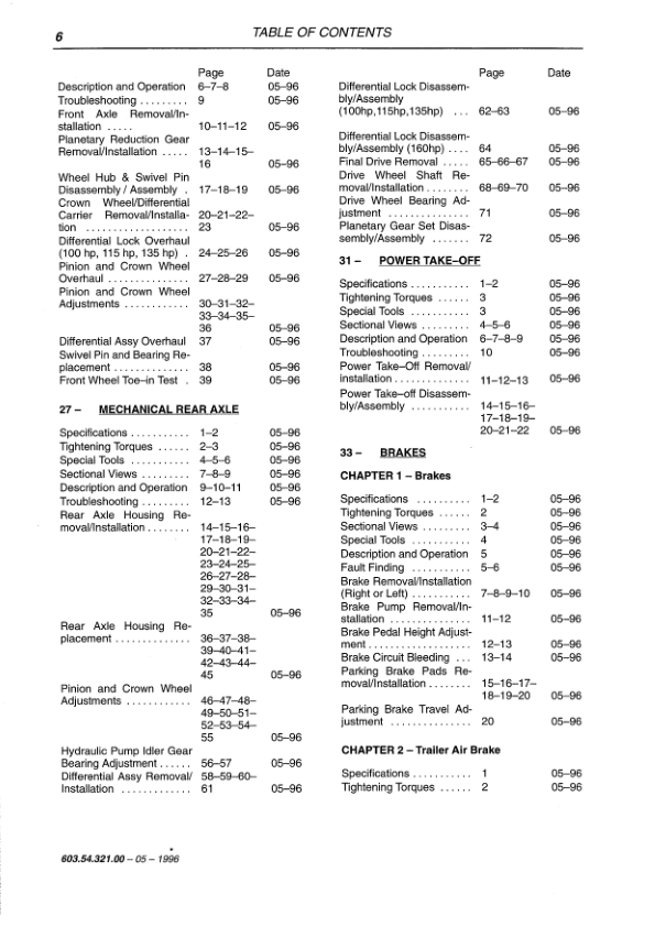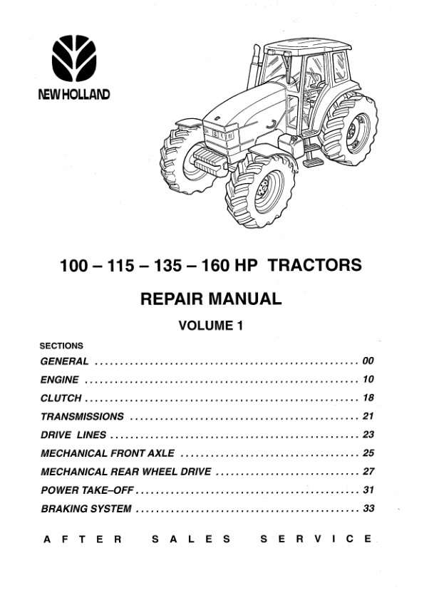 New Holland 100 115 135 160 HP Tractors Repair Manual Vol 1