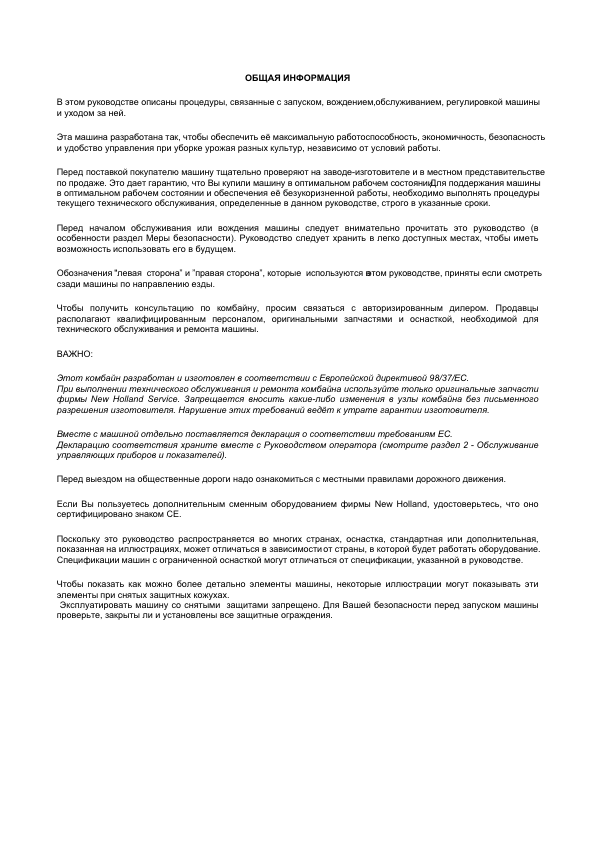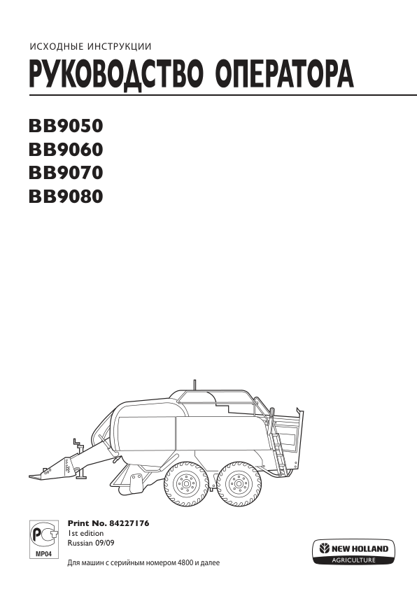 New Holland BB9050 BB9060 BB9070 BB9080 Combine Operators Manual RU