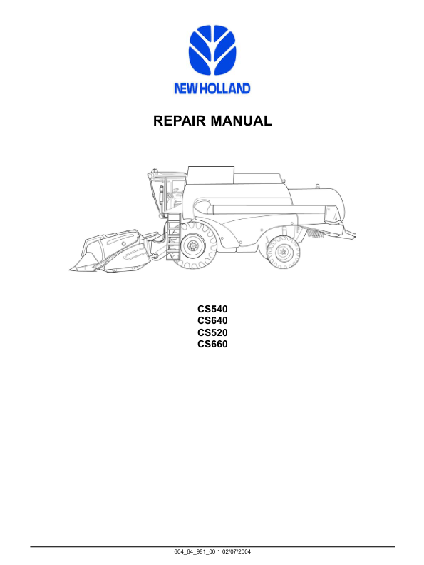 New Holland CS540 CS640 CS520 CS660 Combine Harvester Repair Manual 60464981001