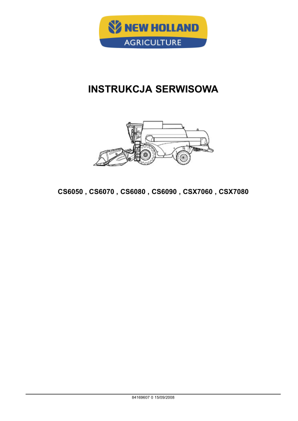 New Holland CS6050 CS6070 CS6080 CS6090 CSX7060 CSX7080 Combine Service Manual PL This comprehensive service manual provides detailed technical information and repair procedures for New Holland CS6050, CS6070, CS6080, CS6090, CSX7060, and CSX7080 combine models. It includes detailed diagrams, illustrations, and step-by-step instructions to assist technicians in troubleshooting, diagnosing, and repairing these machines. This manual is an essential resource for maintaining and servicing these combines to ensure optimal performance and longevity.